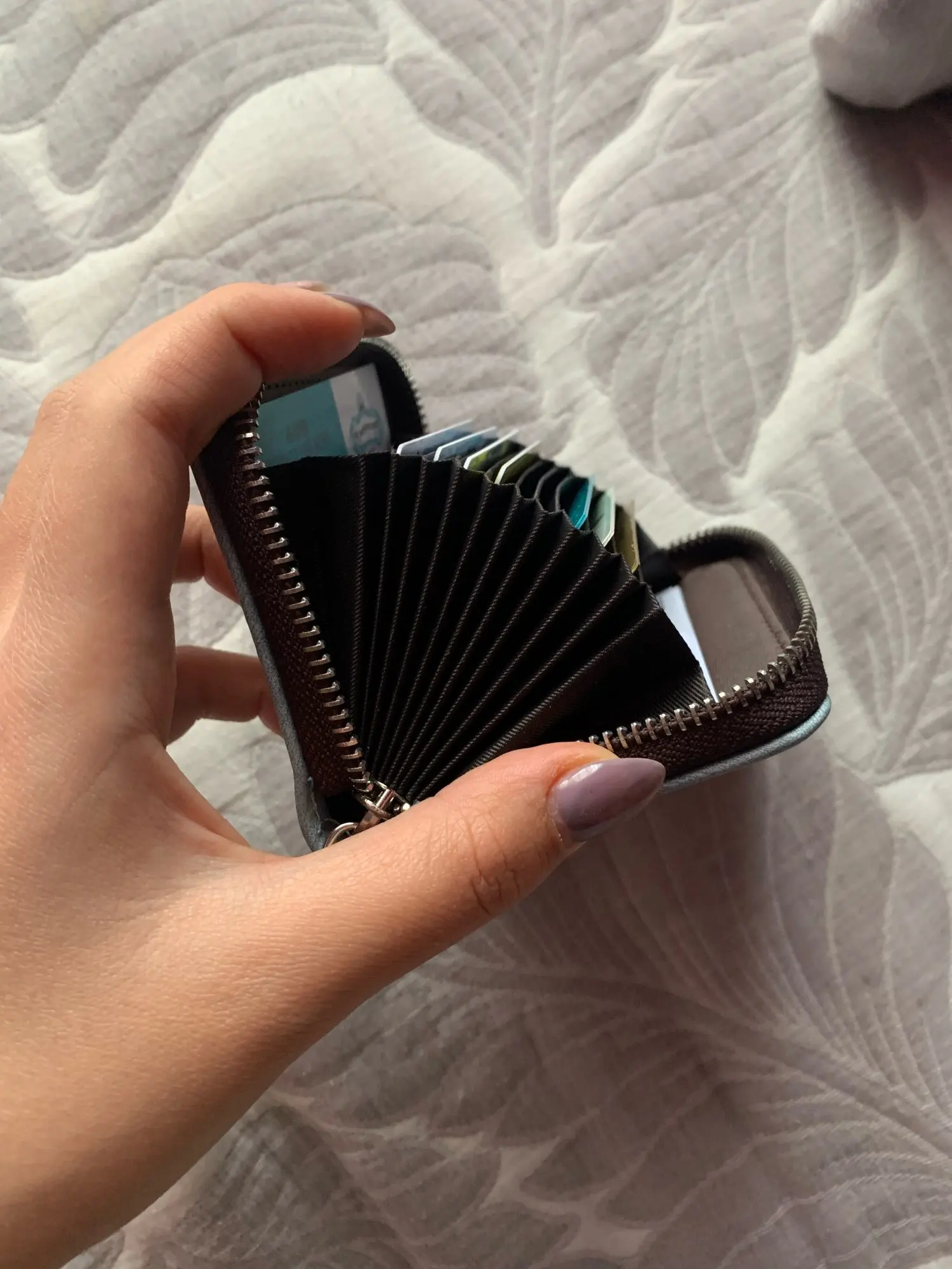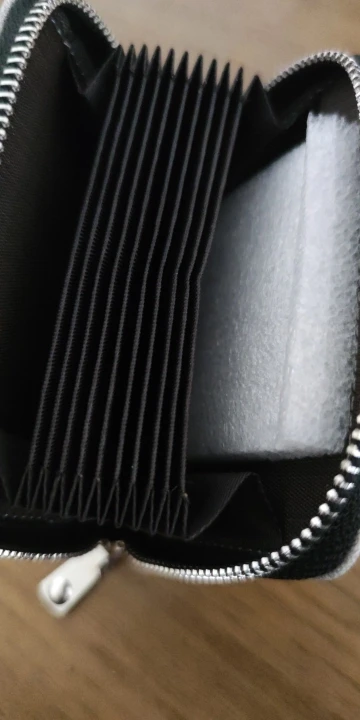 Genial. Pequeño a la vez que espacioso y perfecto para las tarjetas. Incluso con muchas monedas no es difícil de cerrar ni queda abultado!!