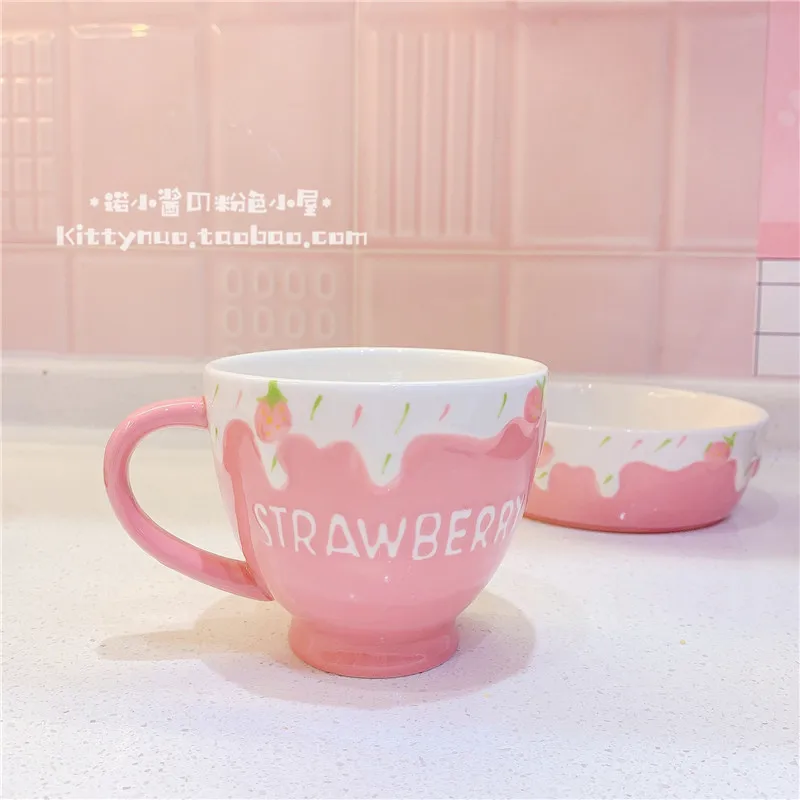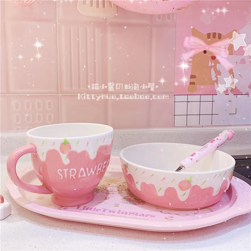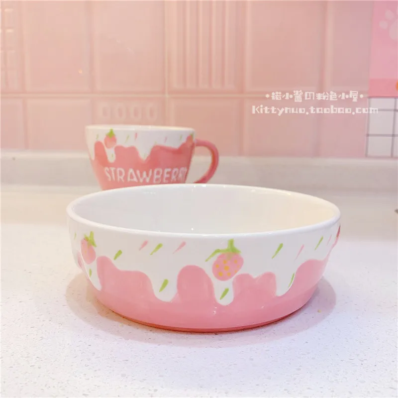 1 шт. милые розовые чаши для риса с рисунком клубники, Нескользящие чаши для супа, посуда для ресторана, десертная чаша