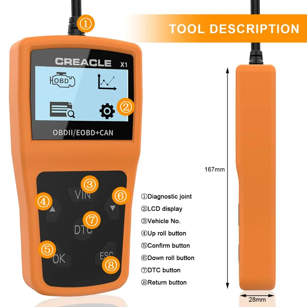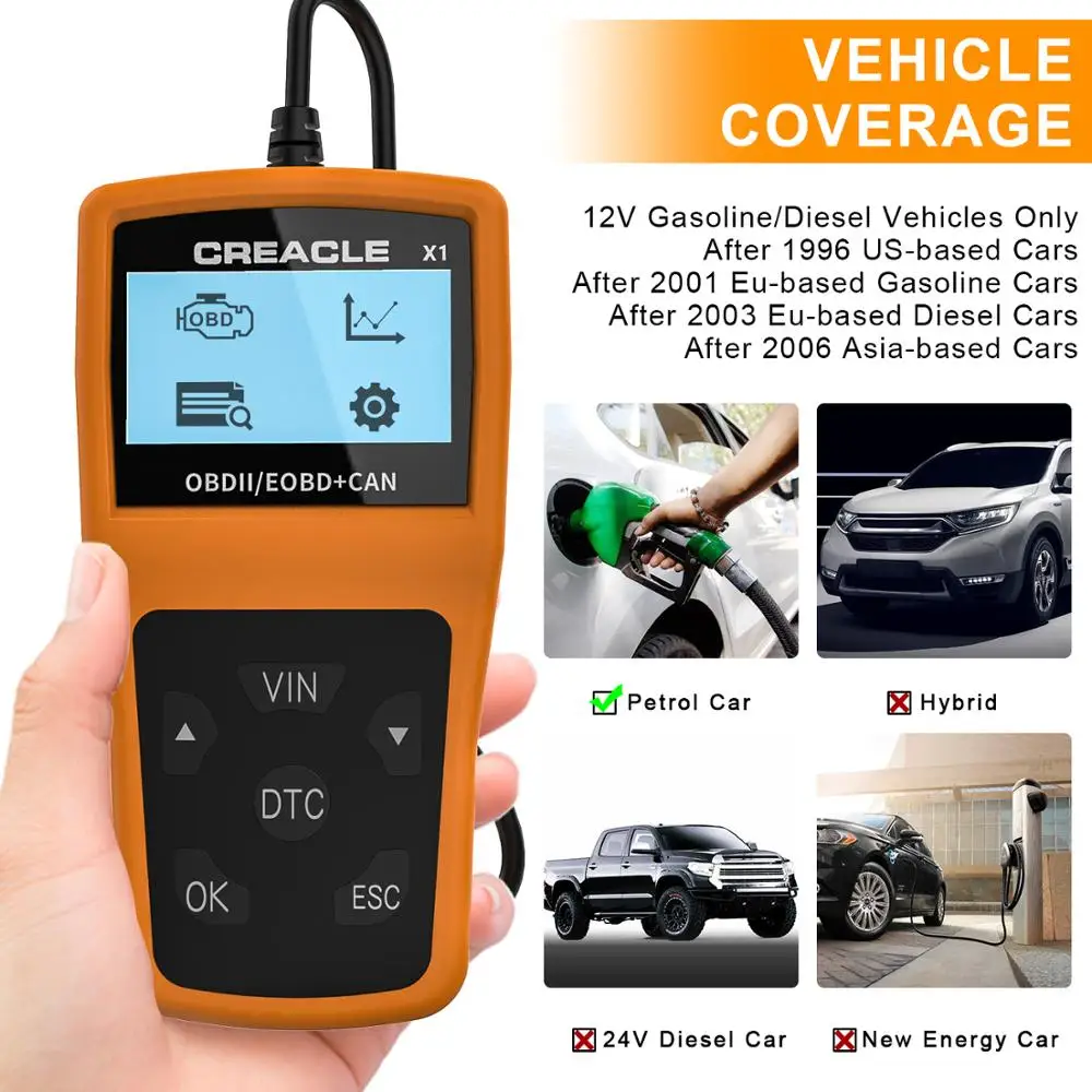 Считыватель кодов X1 OBD II / EOBD разработан специально для всех транспортных средств, совместимых с OBD II,