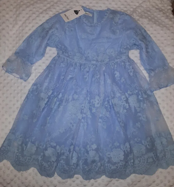 Sukienka jest przepiękna. Rozmiar zgodny z oczekiwanym (na 4 latkę 4T). Bardzo szybka wysyłka i dostawa do Polski. Otrzymałam sukienkę po tygodniu od zamówienia. Kolor sukienki szary taki jak na zdjęciu w aukcji.