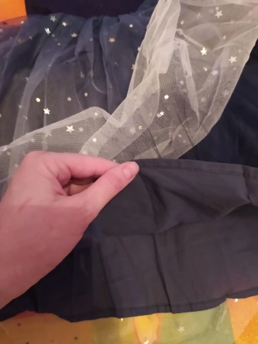 Платье не плохое, но на один раз, потому что звездочки приклеяны на сетку, я даже без стирки могу их снять, а если в стиралку, даже не рискну. Ребенку 3 года рост 97,5 см, заказала по отзывам 5, и зря, максимум нужно было 4, а может и вообще в размер. Данный фасон идет с началом юбки сразу под грудкой, и смотрелось бы оно лучше чем село на нас. И по ширине хлопковая (чисто синяя) часть широковата, немного при движении спадают плечики. Из качественных недостатков, то что у юбки-сетки, верхней, швы с двух сторон прошиты темно синей ниткой, а сама сетка к низу белая, очень заметно, и она не закрыта, а просто свисает. А так платье хорошенькое, на Новый год будет хорошо.