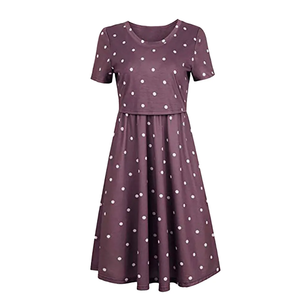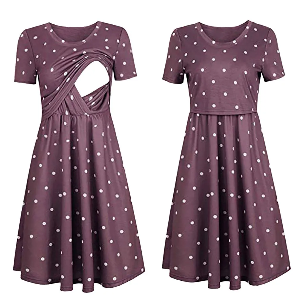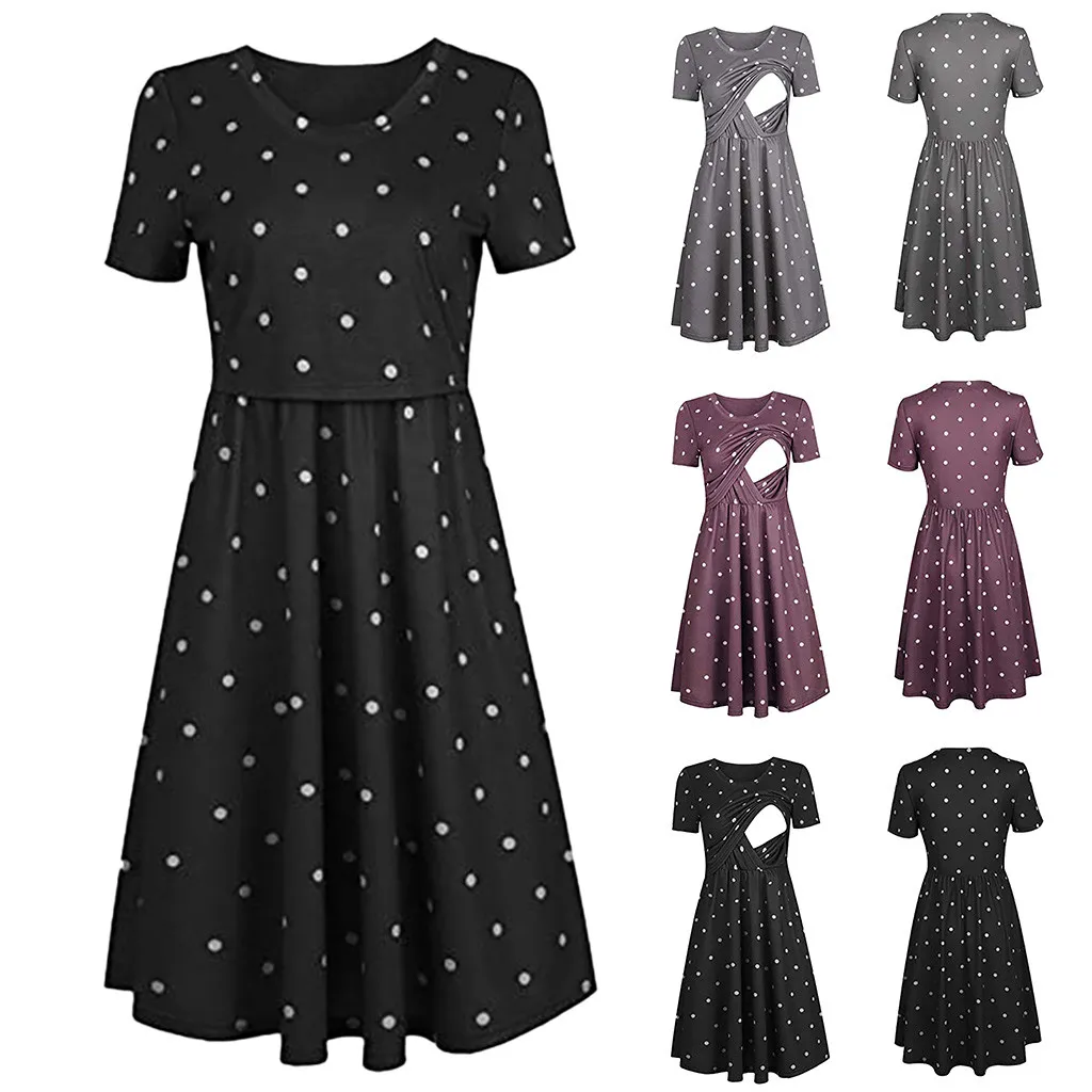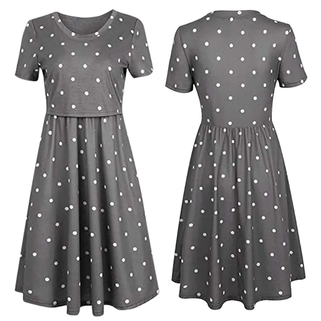 Платье для беременных в горошек, однотонная одежда для грудного вскармливания, летнее элегантное платье для беременных, L1209