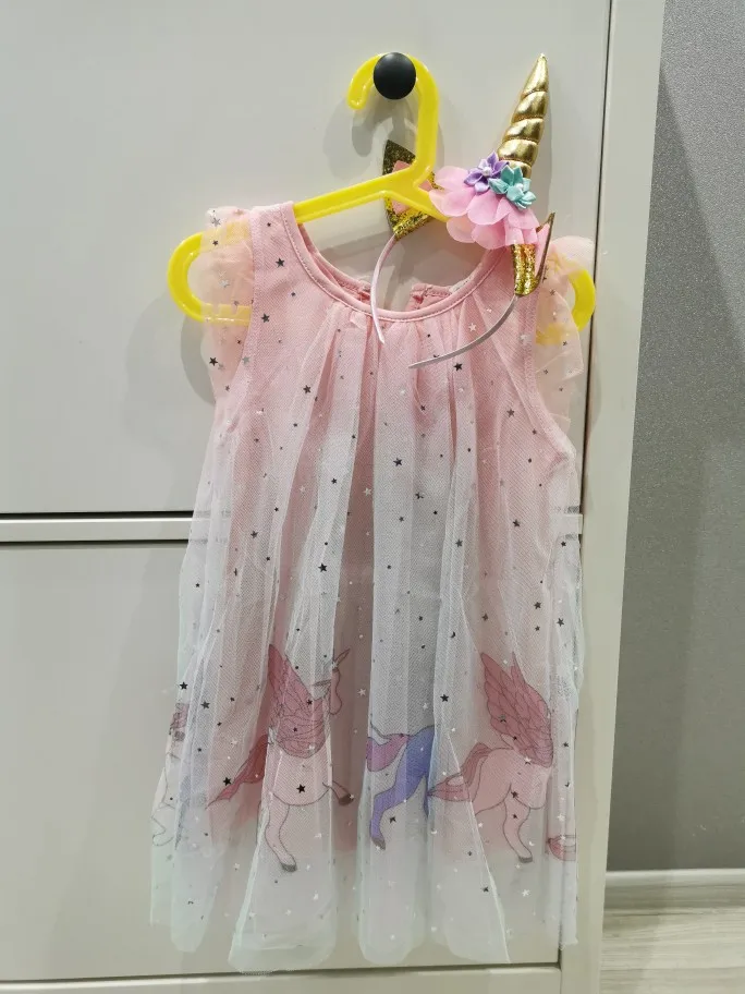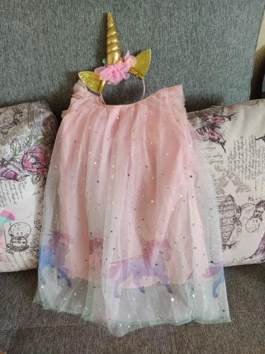 Это действительно отличные платья, и они поставляются с повязкой на голову с единорогом. Ей очень нравится.