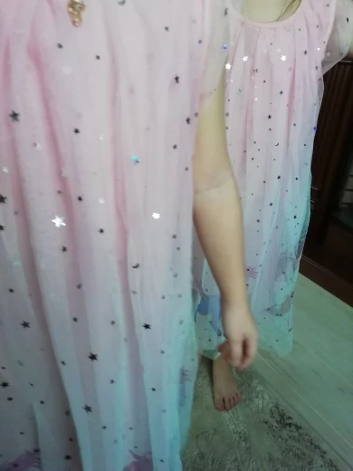 Очень красивое и нежное платье. Немного торчали ниточки. Не критично. Продавец отправил быстро и доставка до Новосибирска была быстрой (меньше месяца). Посылка хорошо отслеживалась. Заказала на девочку 6,5 лет (120см рост) село очень хорошо. Правда платье помоему на 1-2 раза. После активного празднования дня рождения, на платье появились многочисленные затяжки и дырочки. Особо не видно, но всё же. Хотя за такую стоимости качество норм. В общем и целом товаром довольна. Продавца рекомендую.