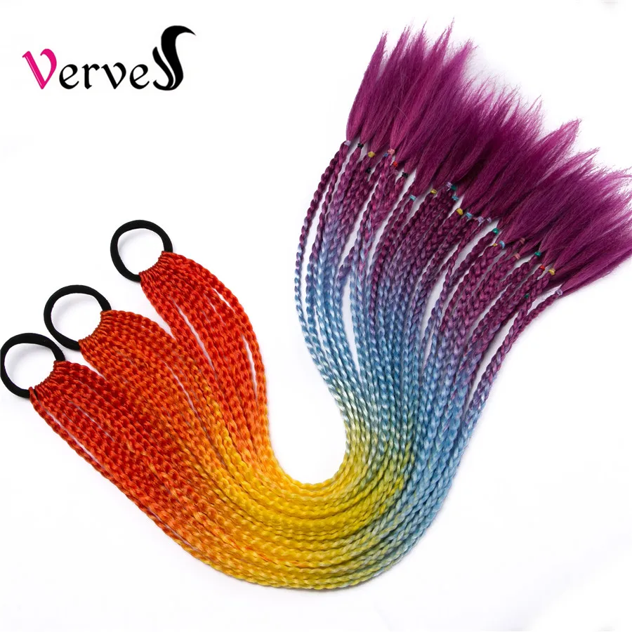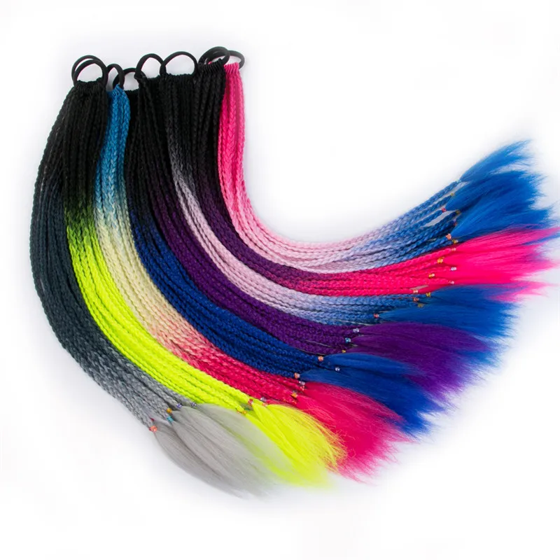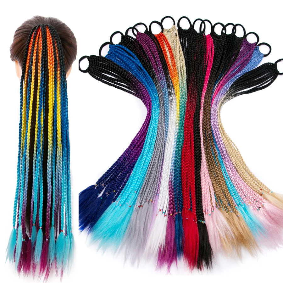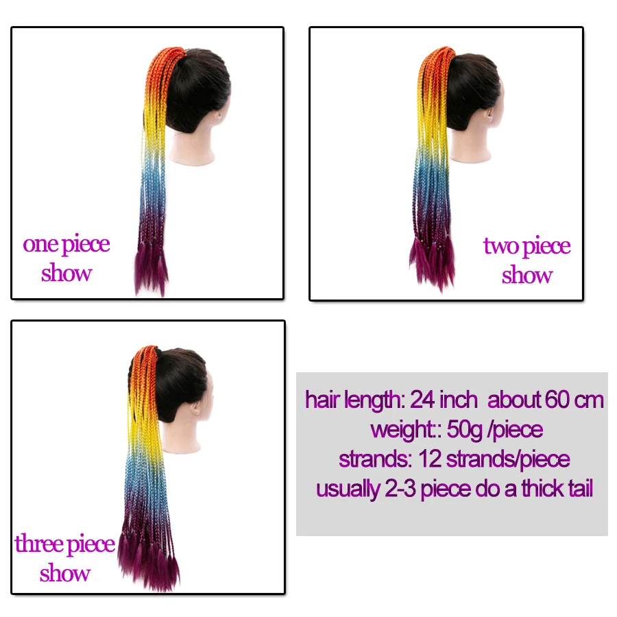 Шиньон для конского хвоста с резинкой, шиньон, 24 дюйма, Плетеный крючком Синтетический хвост, удлинитель волос, розовый, Радужный