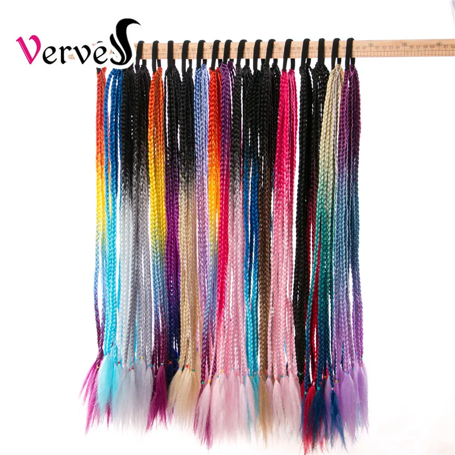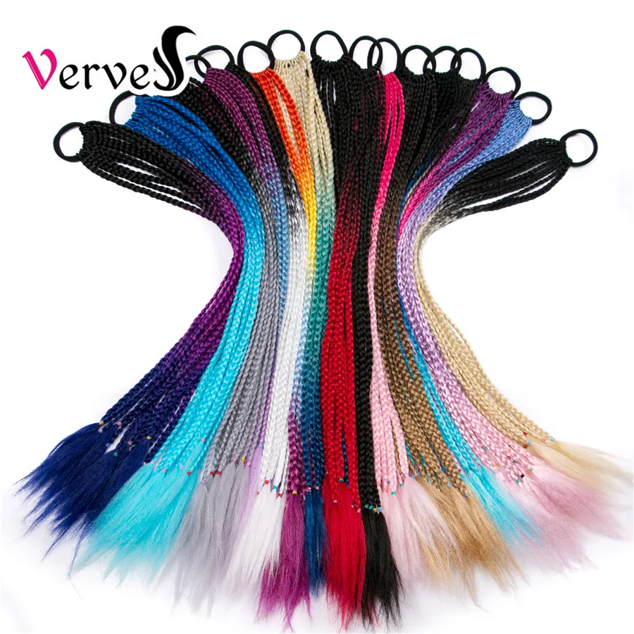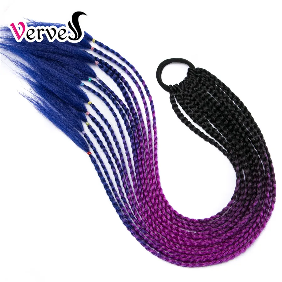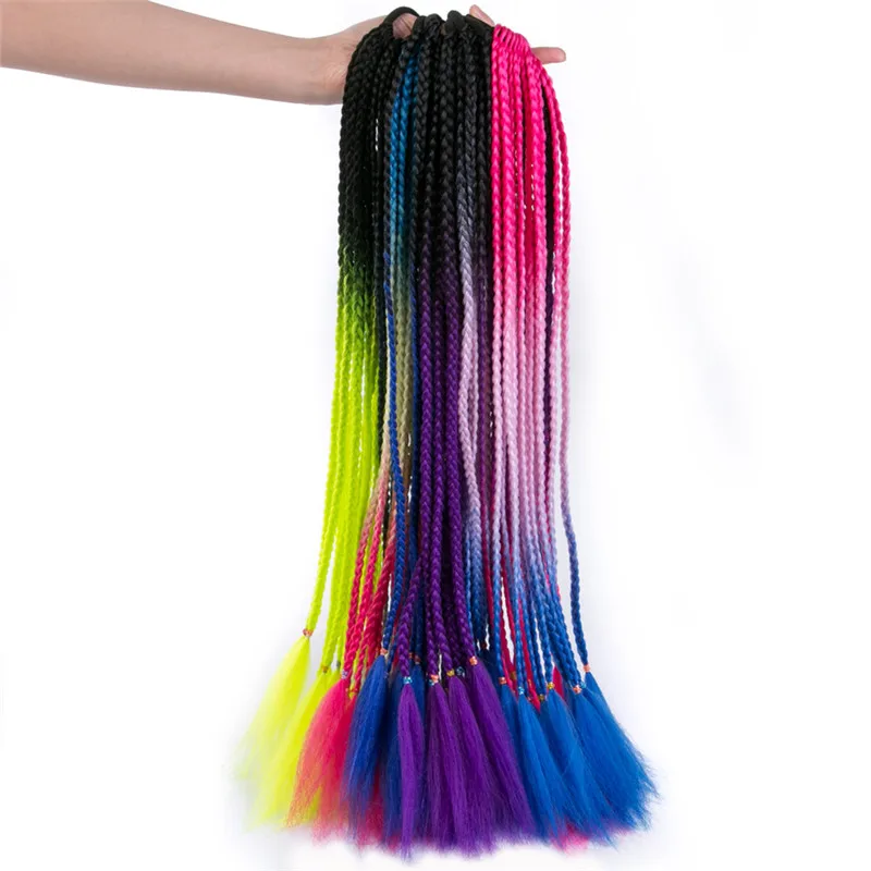 Шиньон для конского хвоста с резинкой, шиньон, 24 дюйма, Плетеный крючком Синтетический хвост, удлинитель волос, розовый, Радужный