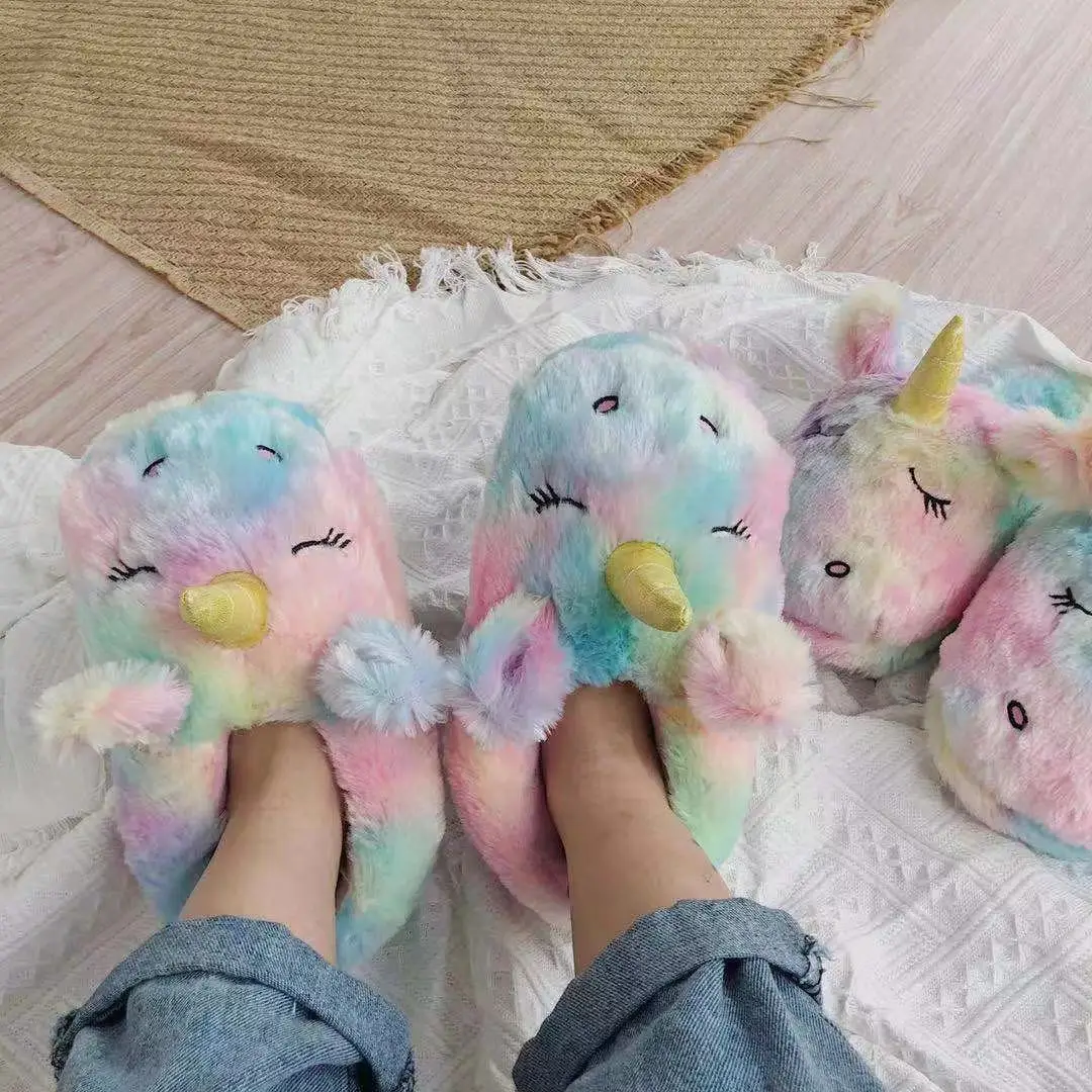Модные плюшевые теплые зимние ботинки для взрослых с милым единорогом, ботинки с героями мультфильмов для детей и девочек, домашние удобные тканевые рождественские подарки