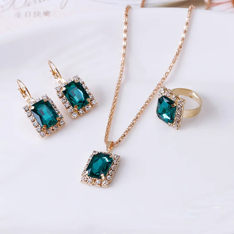 Комплект женских ювелирных изделий, кольцо и серьги, с австрийским кристаллом