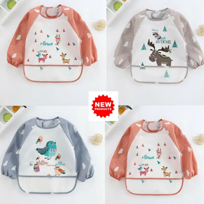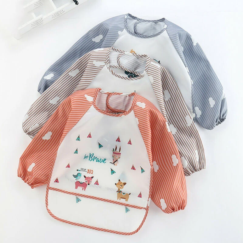 Нагрудники для кормления младенцев, фартук водонепроницаемые ткани, длинные рукава, с ловушкой для еды, детские слюнявчики