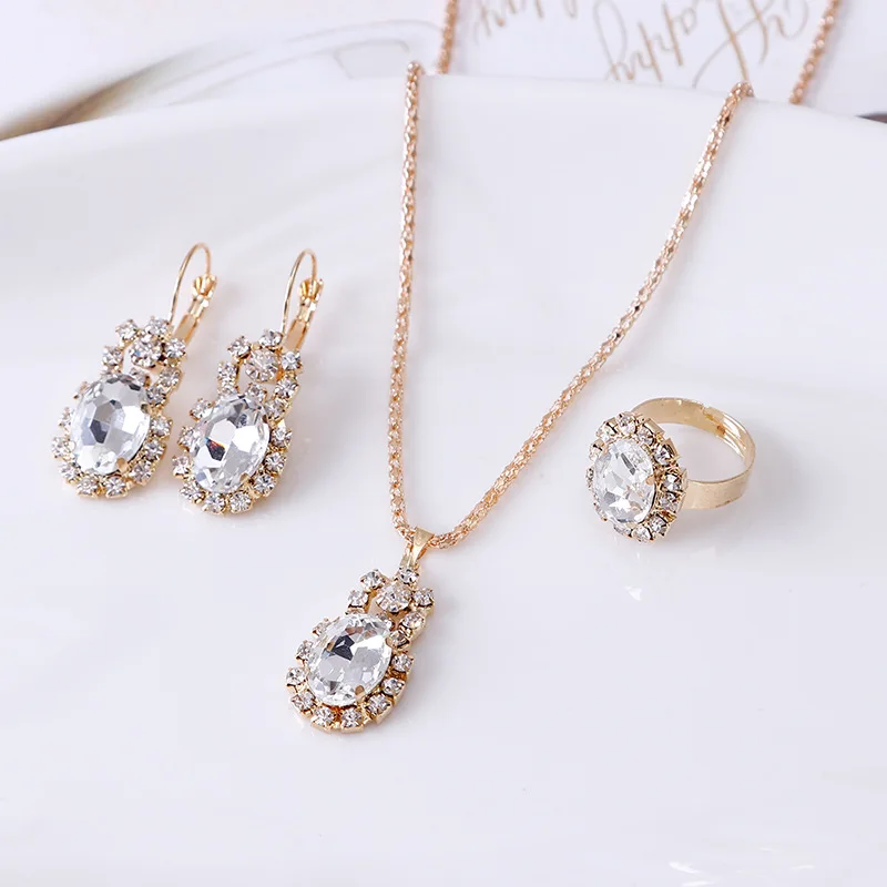 Комплект женских ювелирных изделий, кольцо и серьги, с австрийским ...