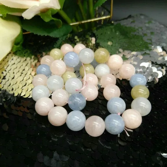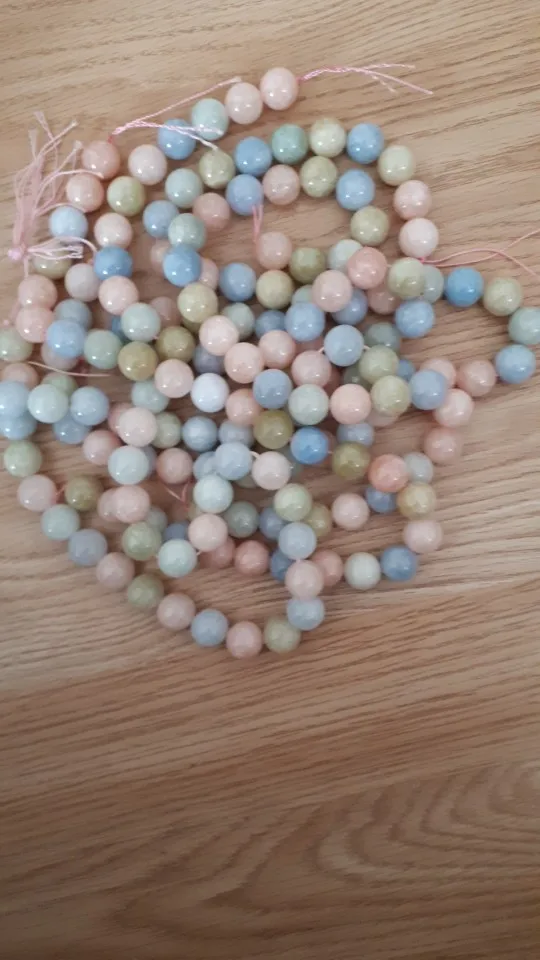Потрясающие бусины из натурального камня. Морганит ,берилл в крвсивых, самых нежных глянцевых оттенках. На выбор разный размер, я остановилась на диаметре 10 мм, планирую сделать два браслета, на мое запястье, как раз подходит. Бусины на розовой нитке, в моем случае 38 штук, как поняли,это зависит от размера бусины. Рекомендую к покупке. Доставка быстрая.