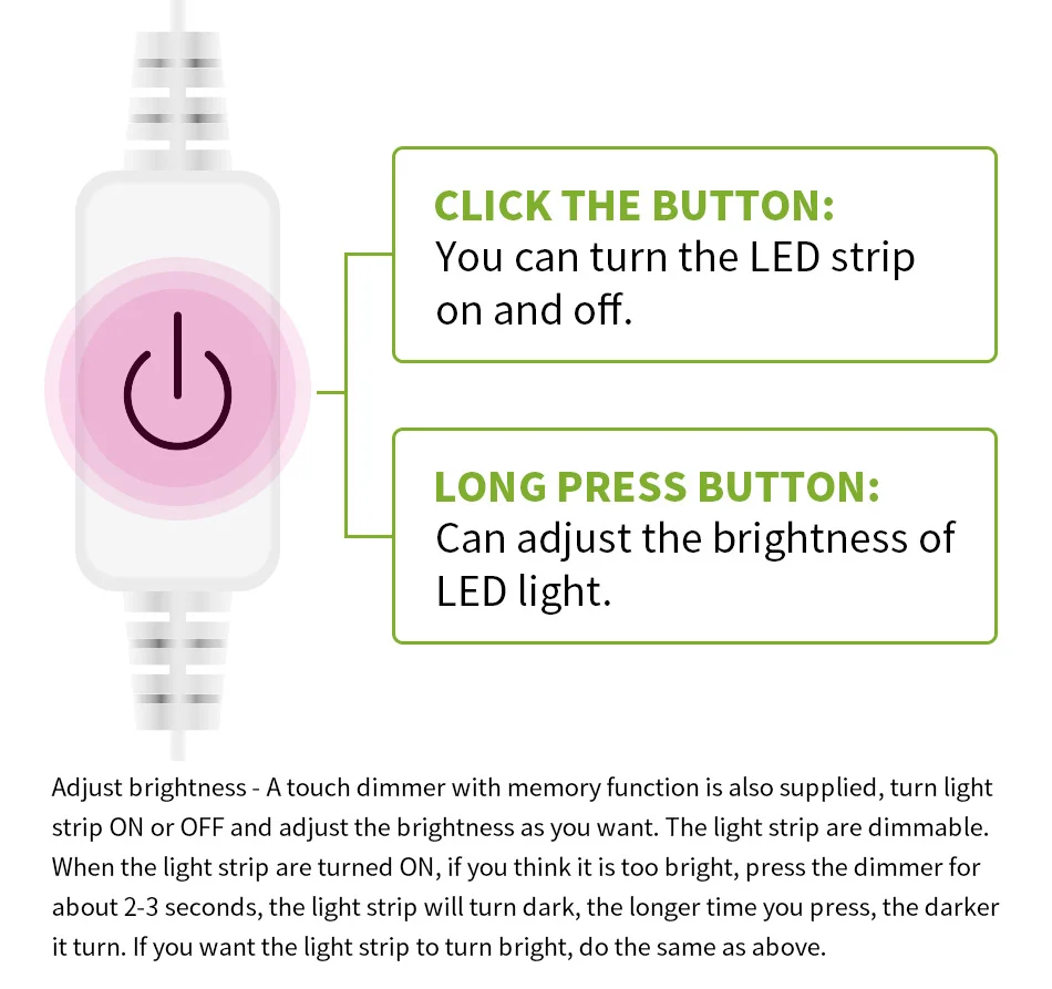 *Usb-порт, ленточный светильник и источник питания могут быть подключены через USB многими способами, такими как ноутбук, блок питания, розетка, поэтому это очень удобно при использовании.