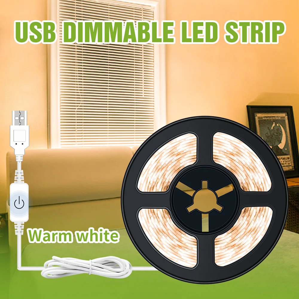 Светодиодная ленсветильник, 5 В, USB светильник аемая Светодиодная лампа для кухни, сенсорное неполярное затемнение SMD 2835, светильник Светка телевизора, светодиодная Диодная лента