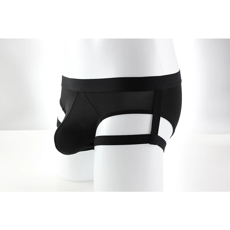 Трусы-брифы мужские с мешочком для пениса, пикантное шелковое нижнее белье, ремни-кольца для ног, с ремнем, мужские трусы, нижнее белье