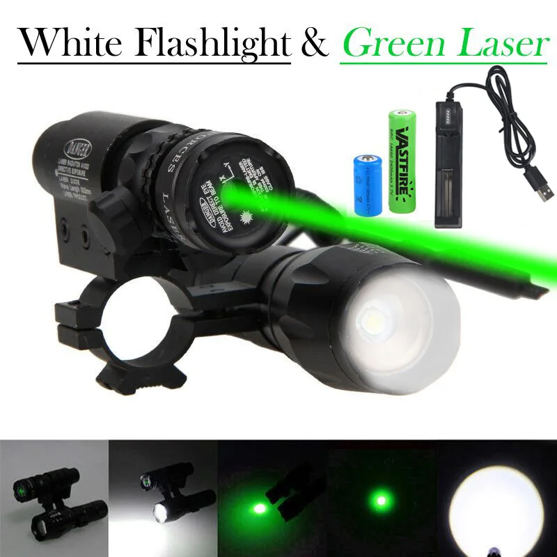 Масштабисветильник рь для охотничьего оружия лм + зеленыйкрасный точечный лазерный прицел + рельсовое крепление для прицела + Датчик давления + аккумулятор + зарядное устройство