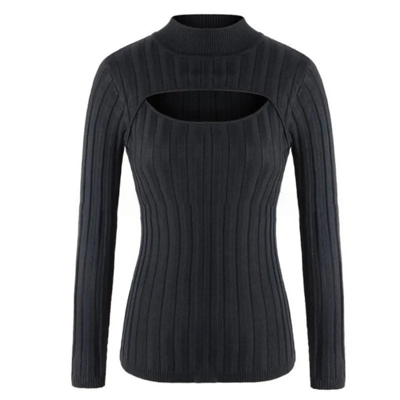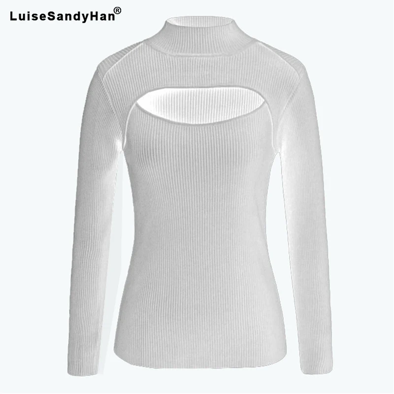 Открытый на груди свитер 2021 женские пуловеры женский однотонный вязаный пуловер Сексуальные облегающие весенне-осенние зимние свитера с низким вырезом