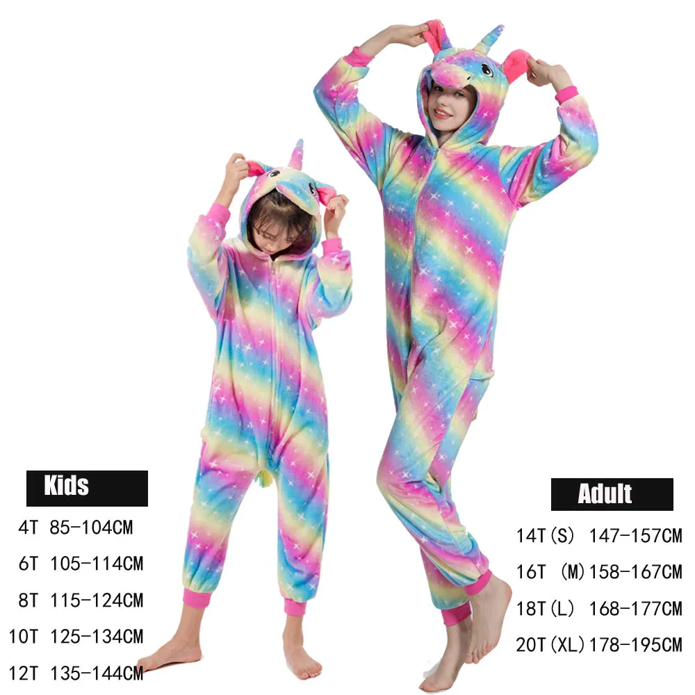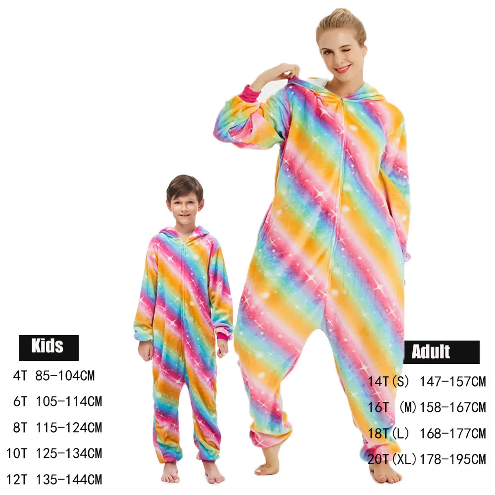 Пижамы кигуруми для женщин и мужчин, пижамы с пандой, единороги с животными, пижамы с радужным единорогом, пижамы для всей семьи, одежда для сна, единорог, животные для детей