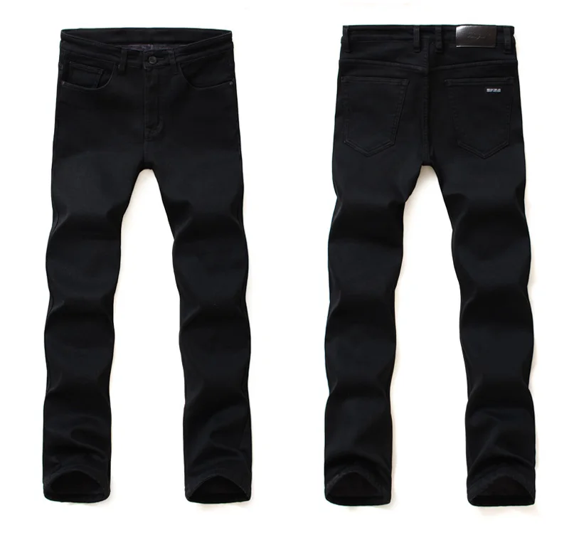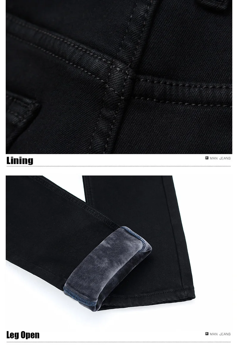 Мужские модные зимние джинсы, черные облегающие эластичные плотные бархатные брюки, теплые джинсы, повседневные флисовые брюки для мужчин