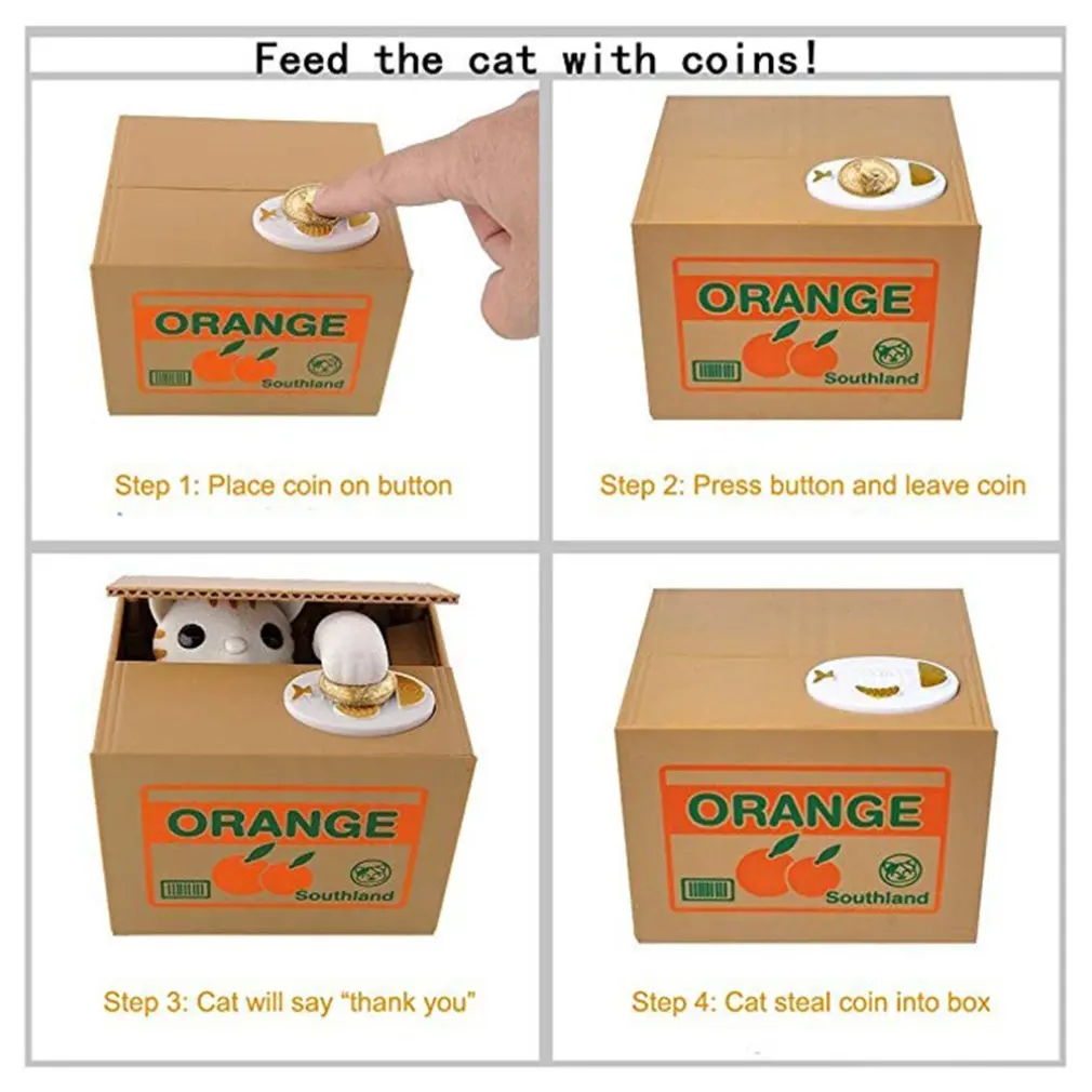 Положите монету в белую пластину на коробку, и котенок, спрятанный в коробке, уберет вашу монету! Невероятно милые домашние тапочки, нужно всего лишь 2 1,5 V батарейки типа AAA