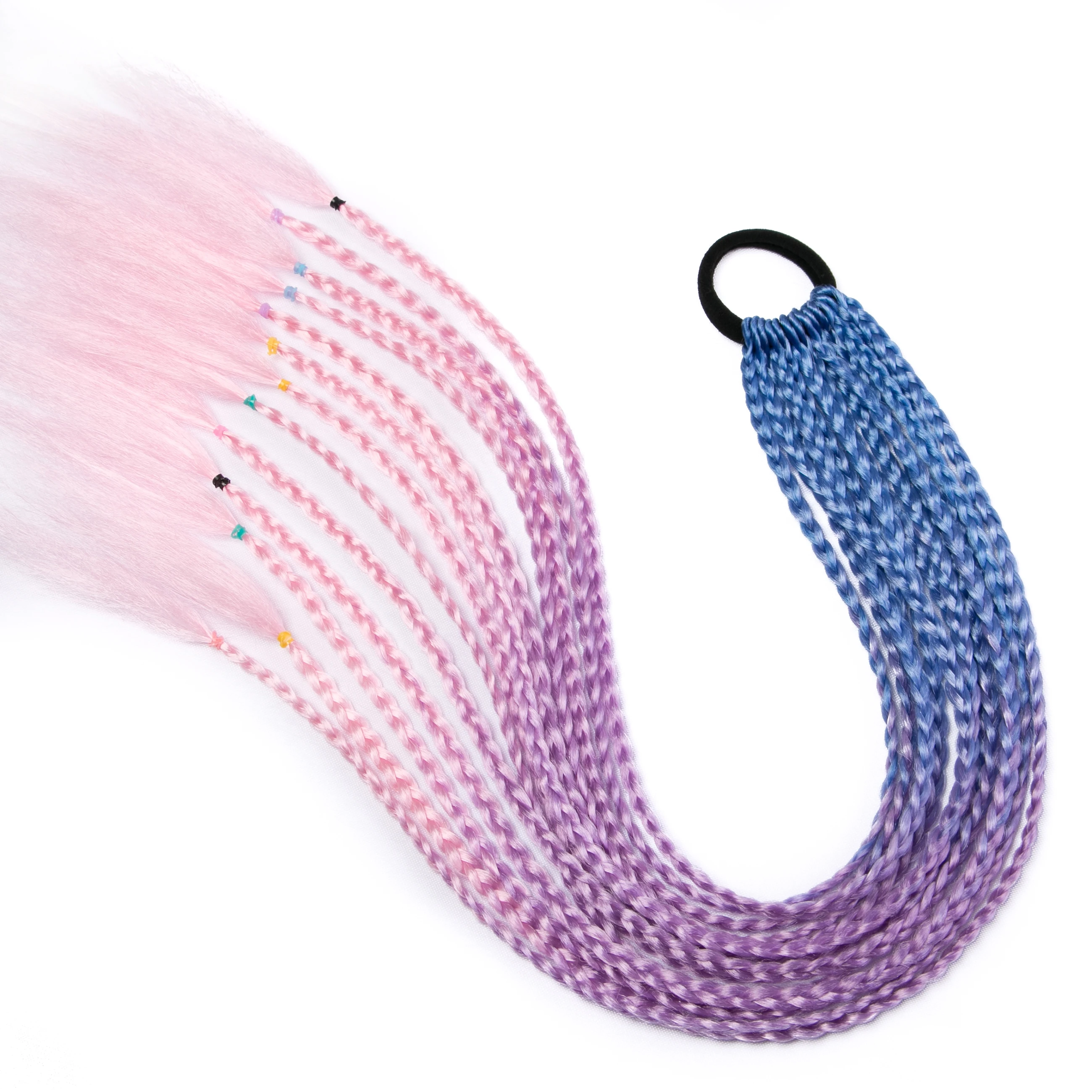 Заколка для хвоста, 24 дюйма, резинка для волос, шиньон, вязаная крючком коса, синтетические волосы для наращивания, розовый, Радужный