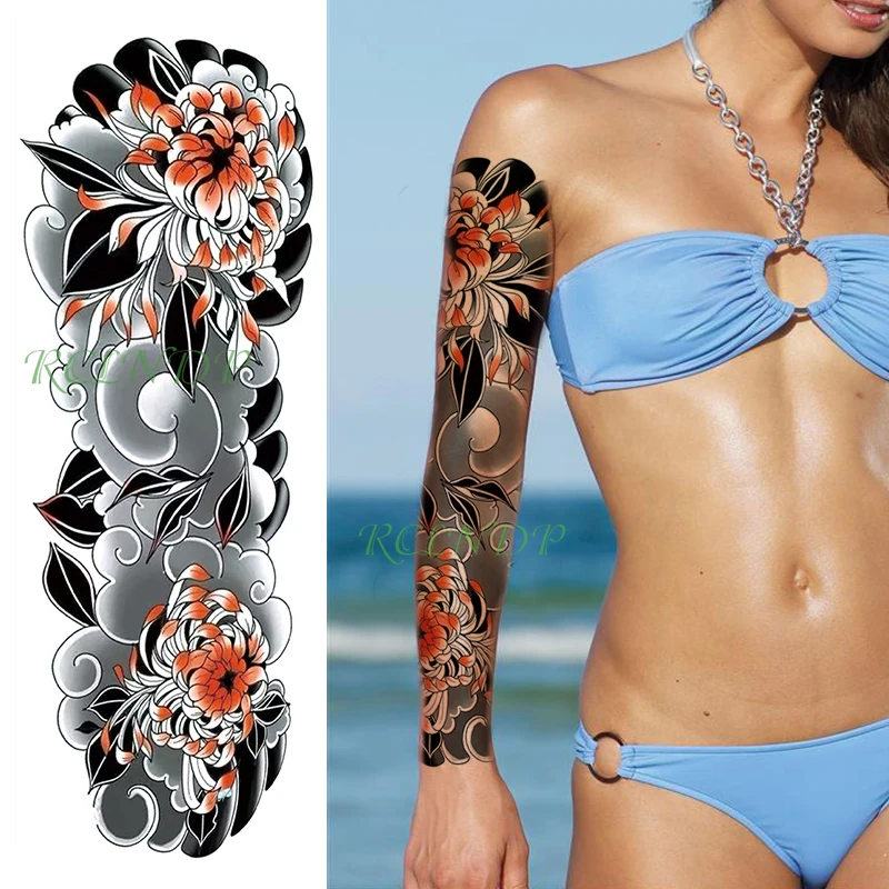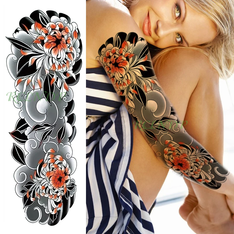 Водостойкая Временная тату-наклейка с большим цветочным волнистым узором, старая мода, полная рука, поддельные татуировки, флэш-рукав, тату для мужчин и женщин