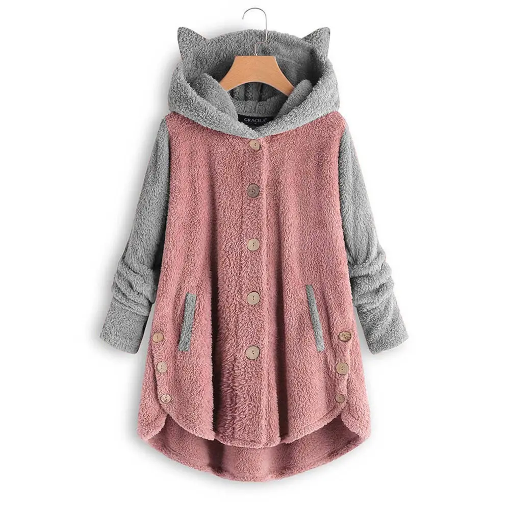 Женские плюшевые толстовки, пальто на пуговицах с карманами с кошач...