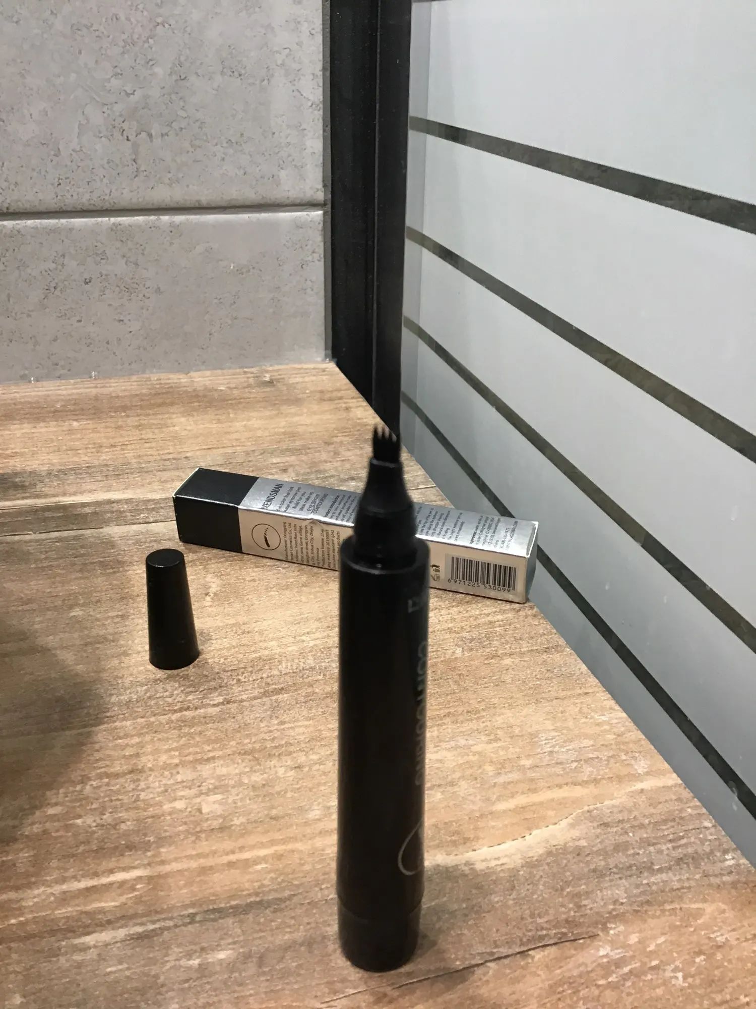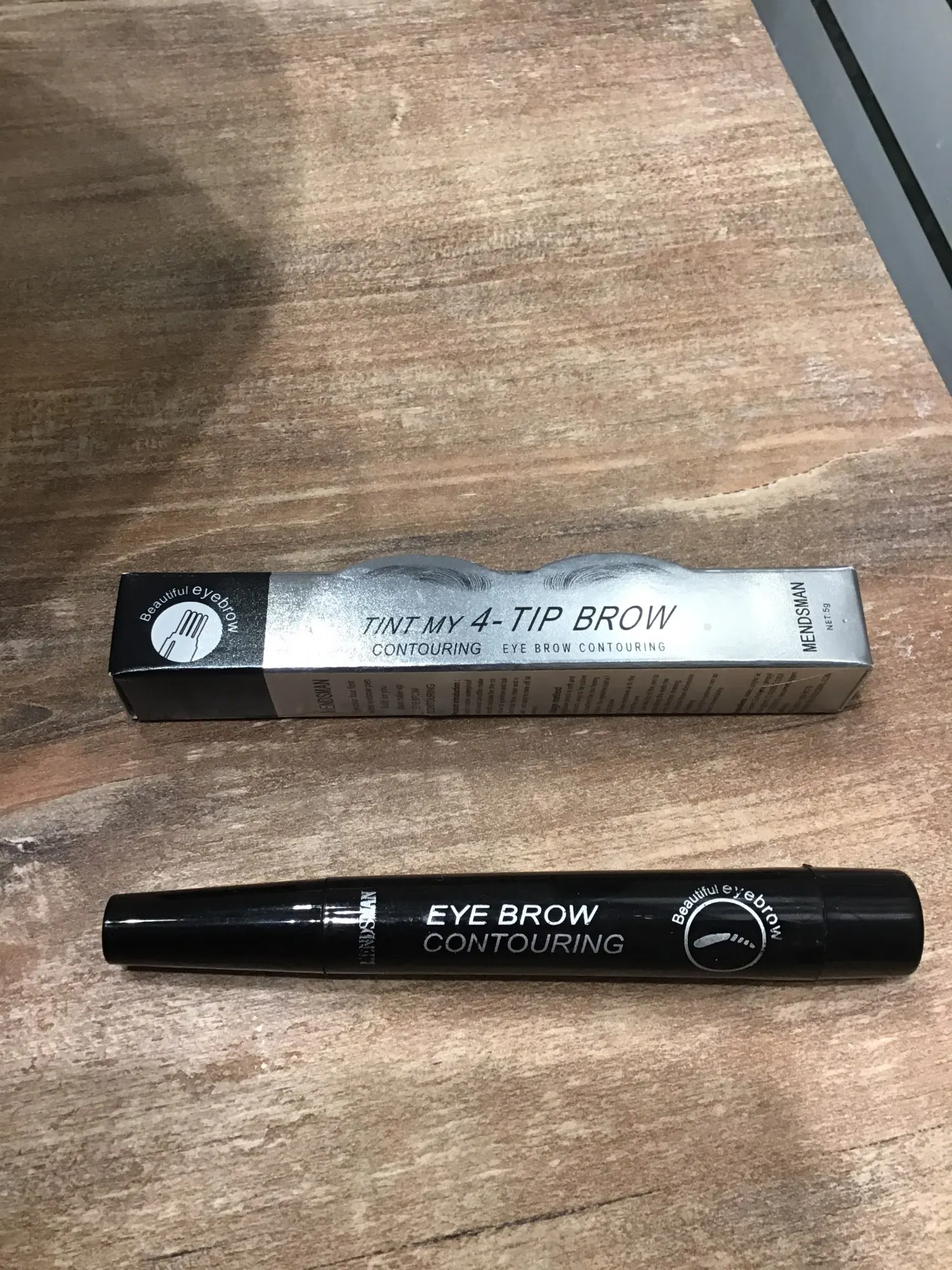 Очень хорошая карандаш для бровей, с щеткой в форме волос. Довольно Прочный