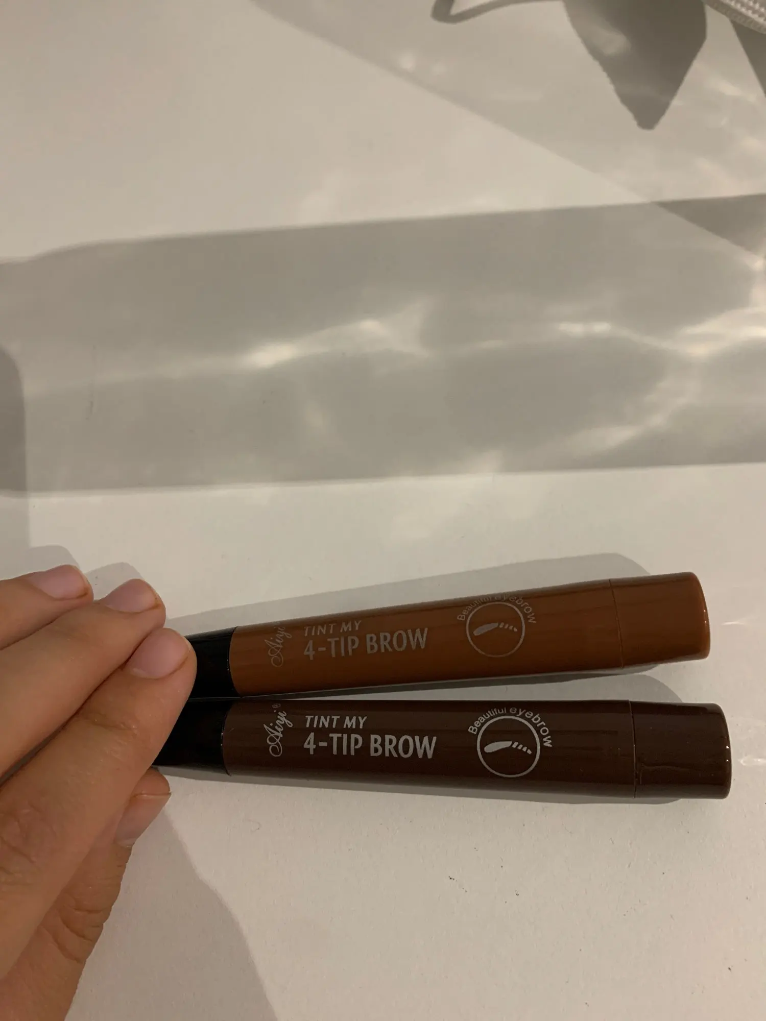 Быстро приходит. Но так и не определилась , какой именно цвет мне подходит, как русоволосой (из-за этого специально накрасила каждую бровь в разных цветах). Серый- слишком темный, коричневый, только если пудрой подзмазать. Но так - хорошо красит, долго держится, и всего за 2 недели приходит в Рязань. Упаковка пришла помятой,но сами карандаши- нет, но это претензия к почте , потому что я даже удивилась, как они в ящик запихнули.