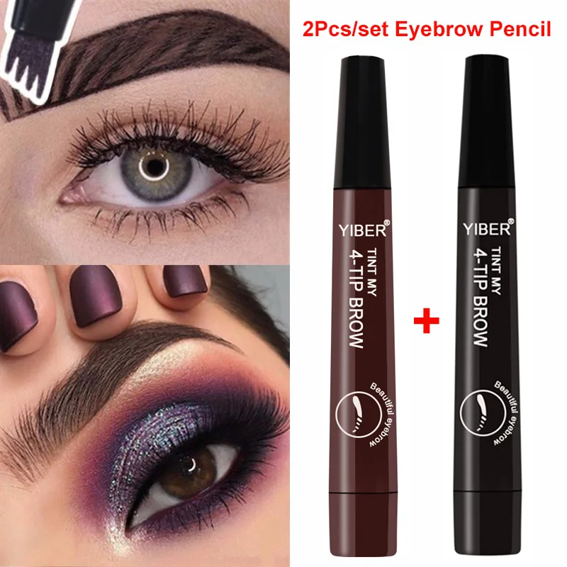 2 шт., карандаш для бровей, водостойкая вилка, кончик, татуаж для бровей, 5 цветов, долговечный макияж, маркер для бровей, краска для бровей, Тонирующая ручка