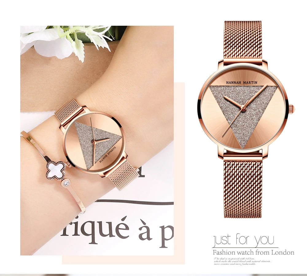 Часы женские кварцевые из нержавеющей стали, розовое золото, водостойкие