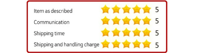 1. Если вы удовлетворены нашими товарами и услугами, пожалуйста, оставьте положительотзывы в и поставьте 5 звезд. И оценить качество товара на 5 звезд. Как только вы покажете нам скриншот 5 звезд, мы предоставим вам скидку на ваш следующий заказ.