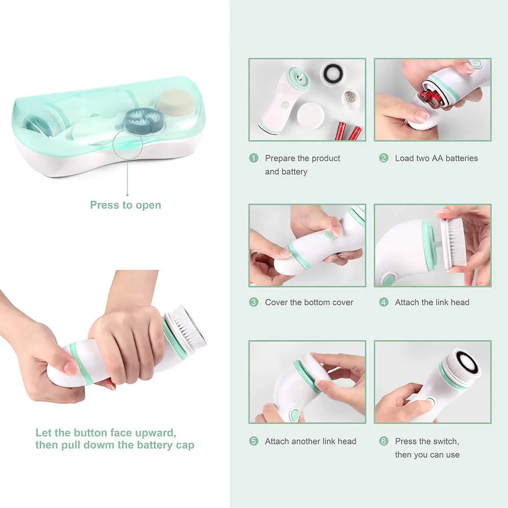 Щетка для чистки лица, электрическая Водонепроницаемая вращающаяся щетка для очищения кожи лица и тела, переносной чехол для путешествий, глубокий инструмент для очищения кожи пор