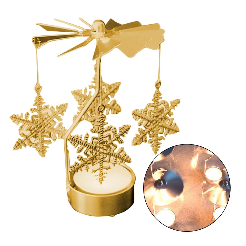 Описание продукта: Идеальный декор: Идеально подходит для украшения вашего обеденного стола и добавит теплую атмосферу.С металлическим материалом и гальваническим покрытием, он не легко ржаветь и имеет длительный срок службы.Многоразовый: отличный декор для вечеринок, свадеб, Рождества, витрин магазинов и отелей и т. Д.Подходит для украшения дома, офиса, отеля и так далее. Это прекрасный подарок для друзей и семьи.Подсвечник использует технологию теплового вращения. После освещения свечи, висячий кусок над будет вращаться медленно, что является новым и уникальным.