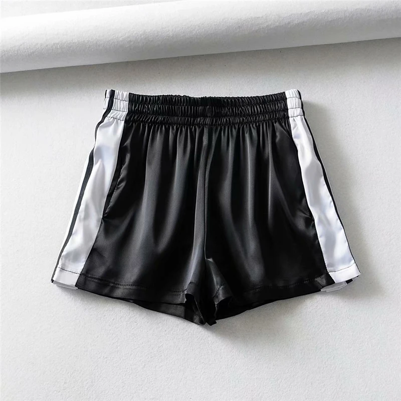 Женские атласные шорты, черные эластичные летние шорты для танцев в Корейском стиле, яркие шорты с высокой талией, 2020
