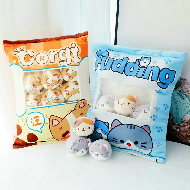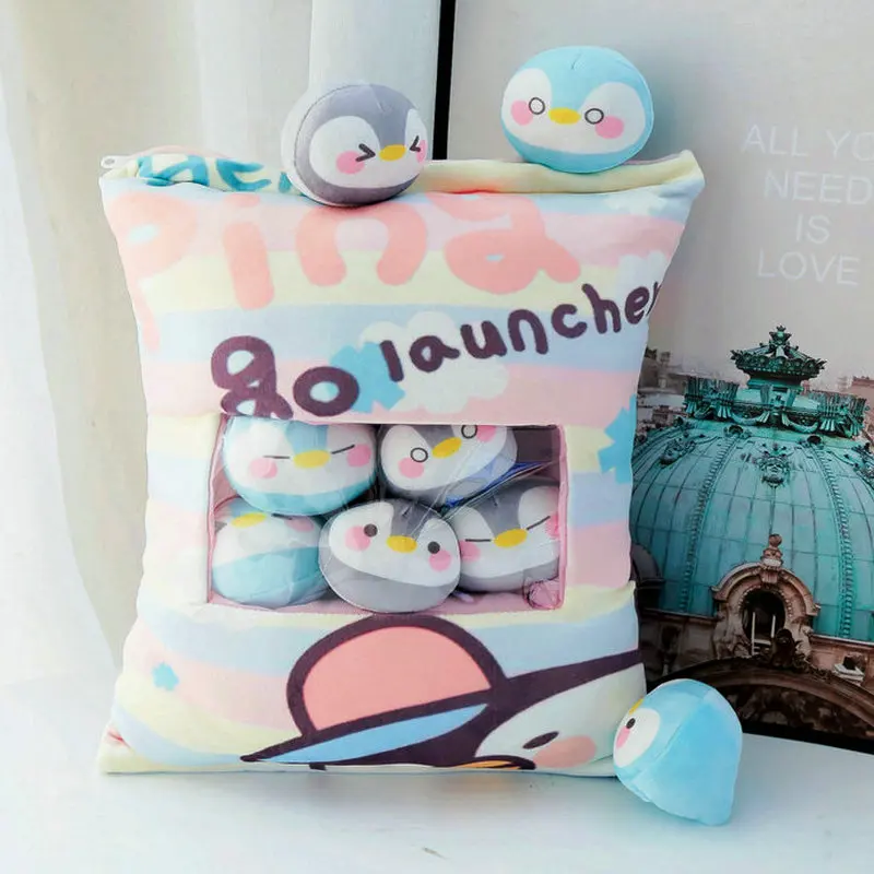 Пудинг-подушка в виде кошки, 8 шт., милый пингвин, декоративная подушка с 8 мини-куклами с различными эмоциями, игрушки внутри, уникальный подарок для детей
