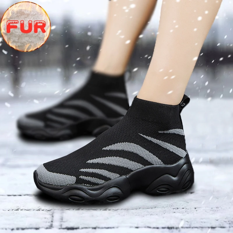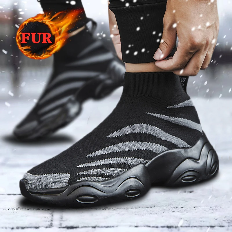 Высокие мужские кроссовки, теплая Повседневная Спортивная обувь из ...