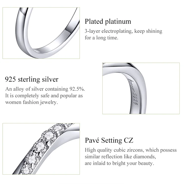 Женские Простые Кольца с фианитом, серебряные кольца с искусственным цирконием, ювелирные изделия из стерлингового серебра EFR095