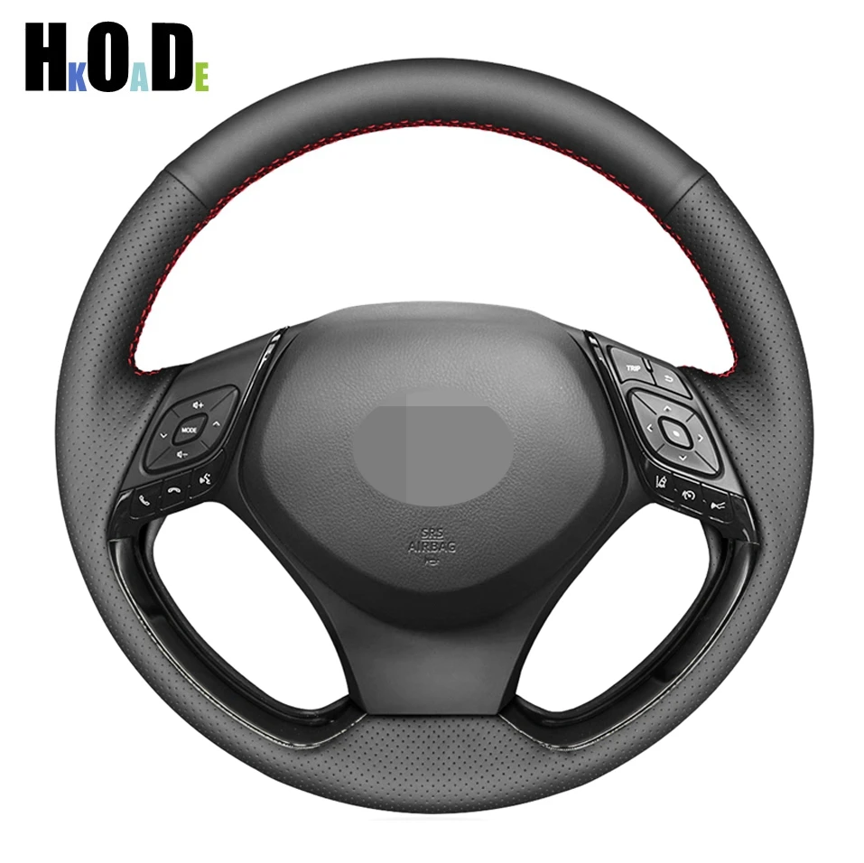 Черные чехлы для руля из натуральной кожи, ручная строчка, для Toyo...