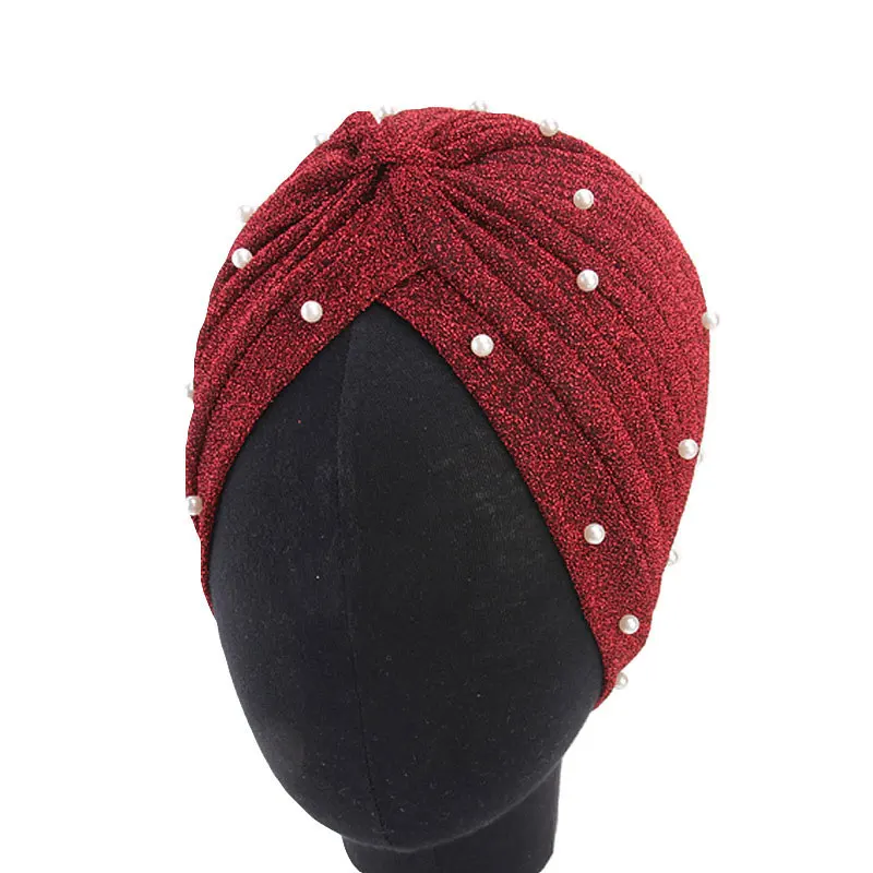 Горячая Распродажа, Женские Простые хиджабы, мусульманские блестящие жемчужины, бисерная сетка, головной убор для волос, тюрбан, головной убор, шапка, аксессуары для волос, зимние шапки