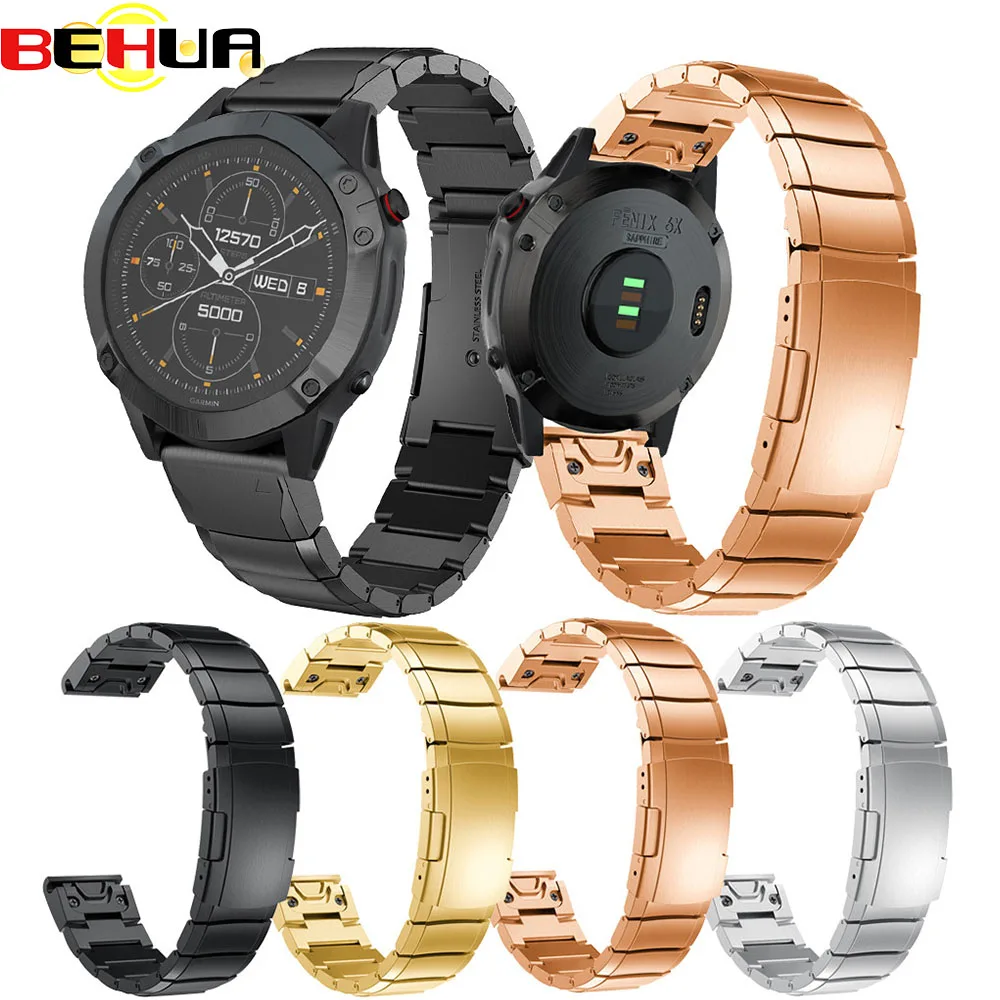 Ремешок из нержавеющей стали для наручных часов, металлический быстросъемный браслет для Garmin Fenix 6X 6X Plus 5X5X Plus Fenix 33HR, 26 мм