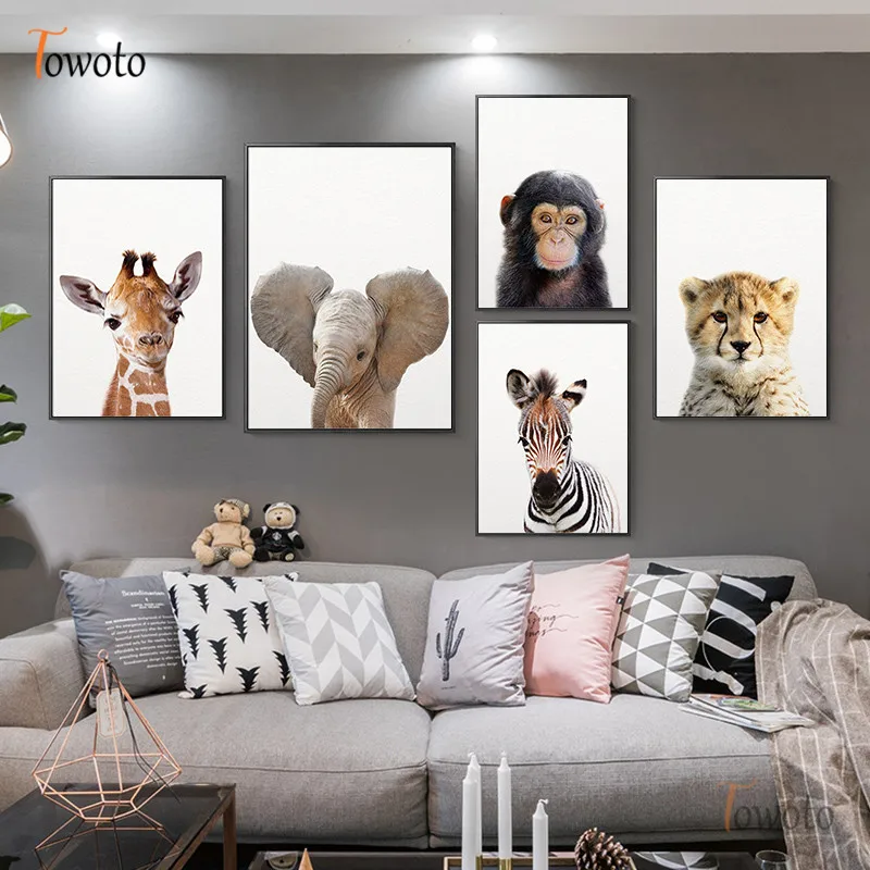 Детские плакаты с животными, Современная Картина на холсте сафари д...