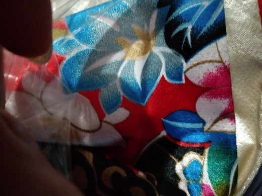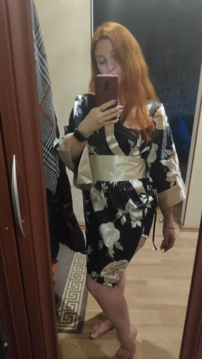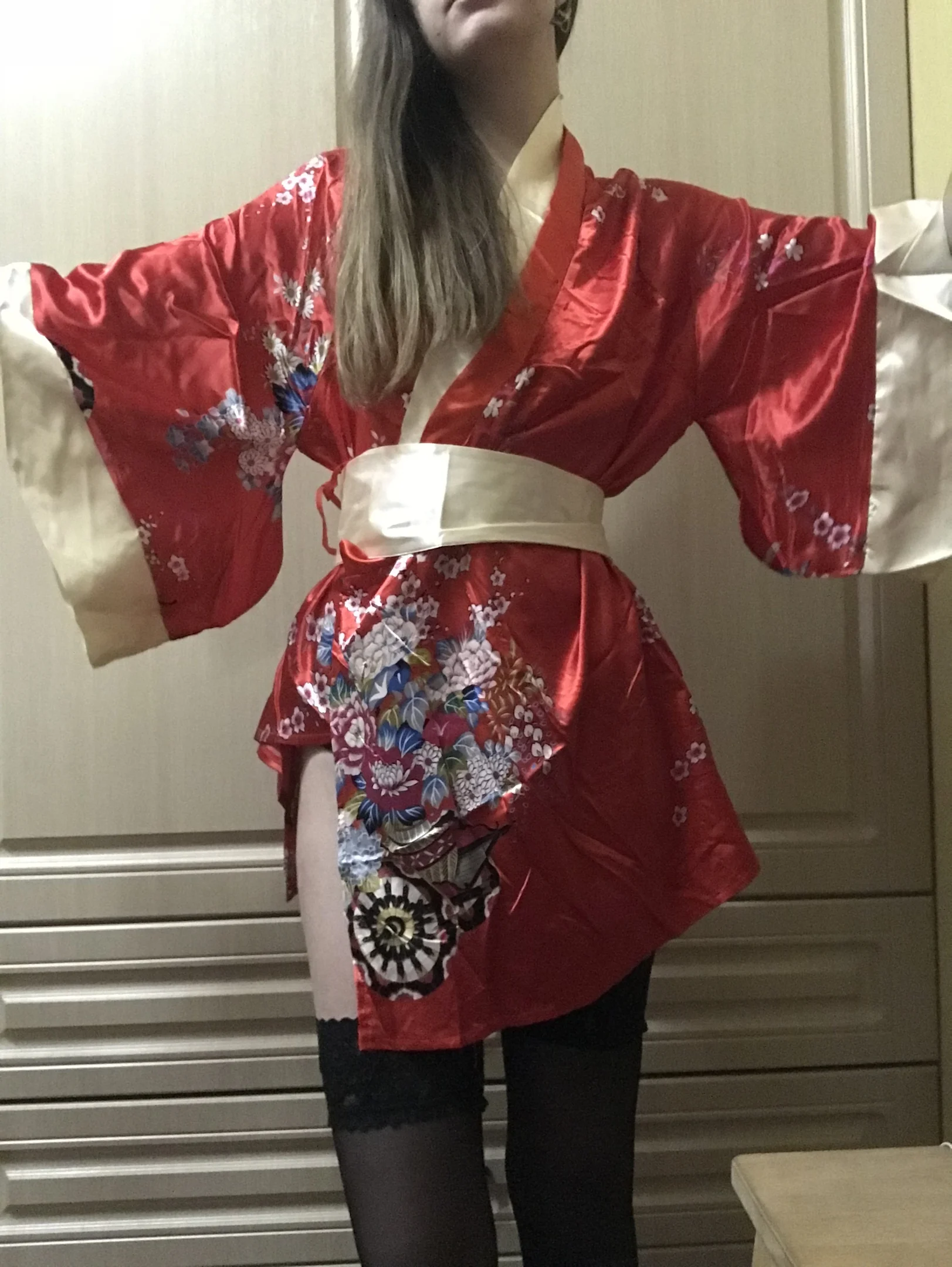 Очень долго шла посылка Заказала 26 октября, пришла 5 января. Подозреваю, что всему виной глобальная распродажа 11 ноября+в Минске посылка 2 недели просто так валялась перед новым годом. Само кимоно клевое, правда пришлось ломать голову как его правильно повязать, ибо там 4 ленты-завязки. Получилось не так, как на обложке товара, конечно, но и мы не японки, чтоб на нас всё идеально было Подсказка: левую внешнюю ленту надо обмотать вокруг талии и повязать спереди слева с правой внешней лентой(это всё прикроется поясом) Ткань приятная, но в ней быстро становится жарко Если красиво спустить на плечи, ткань подтягивается и кимоно якобы становится короче. Длиннее - если надеть как обычный халат В общем занятная вещь, весьма красивая