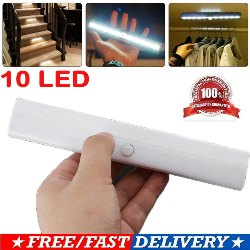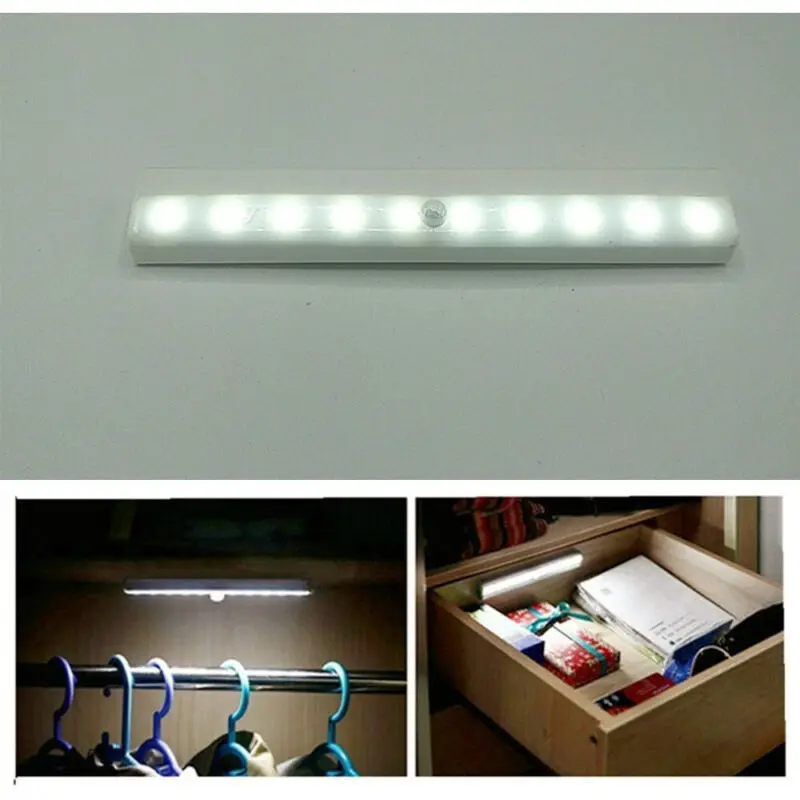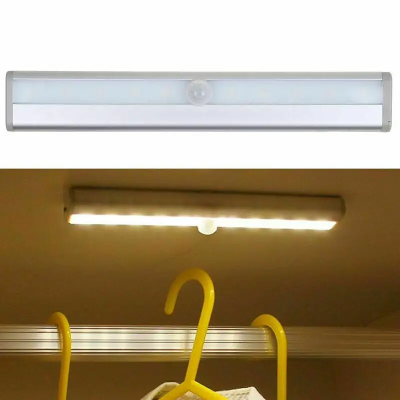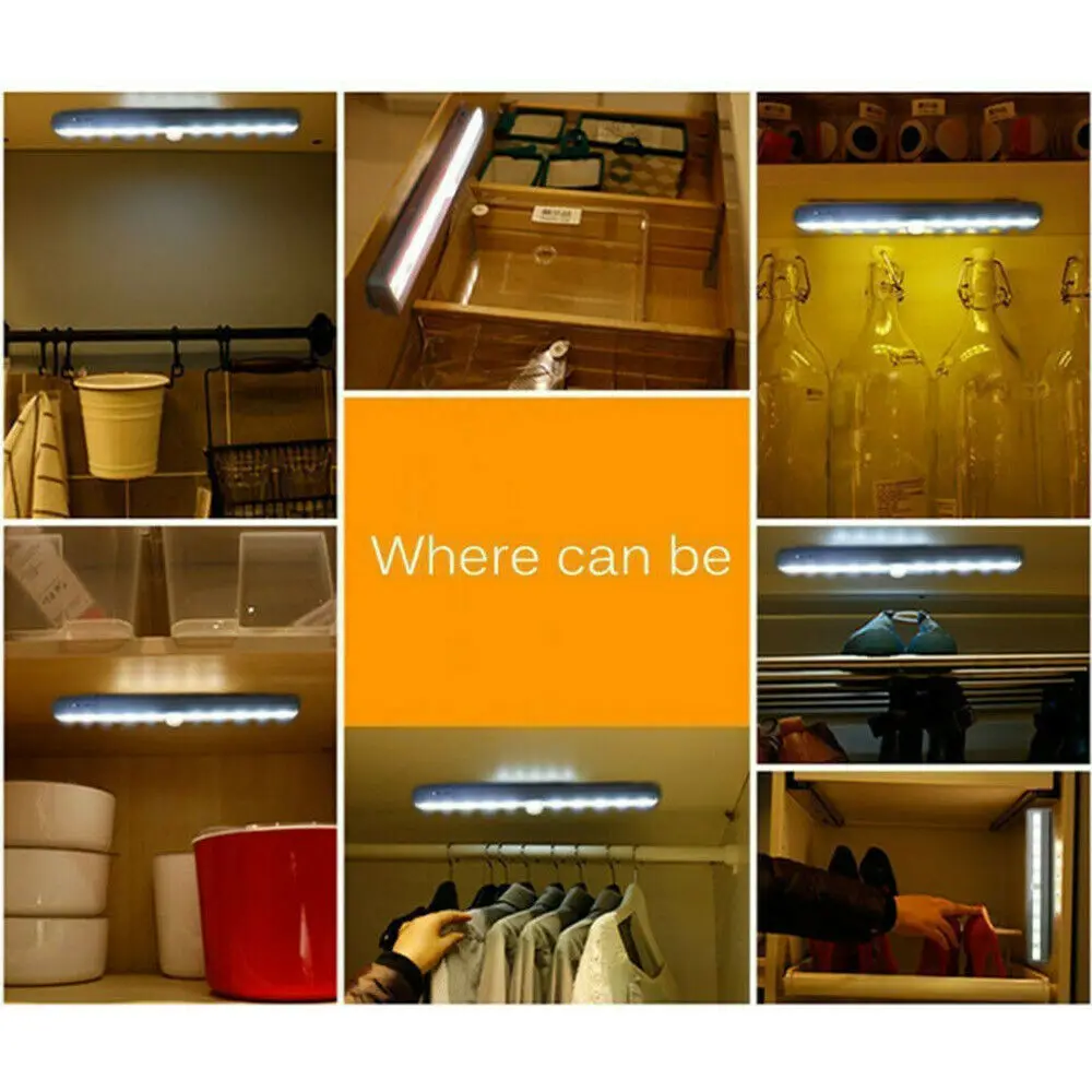 Беспроводной светильник для шкафа, 10 светодиодов, с датчиком движения, с питанием от батареи, теплыйбелый свет
