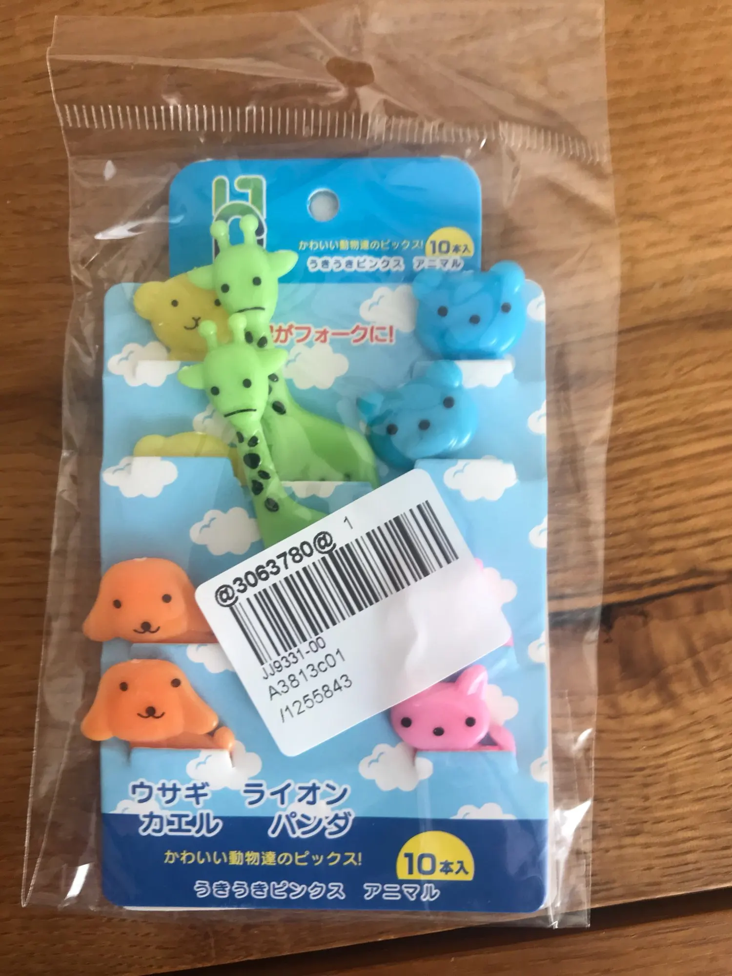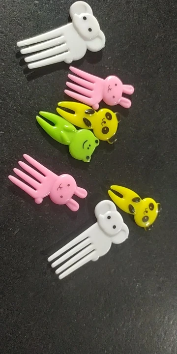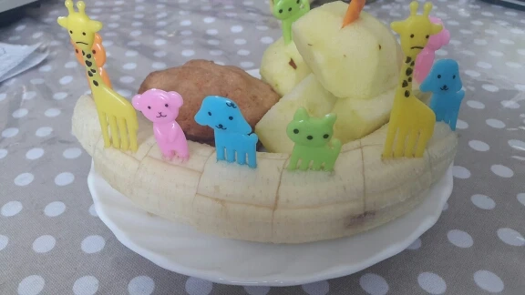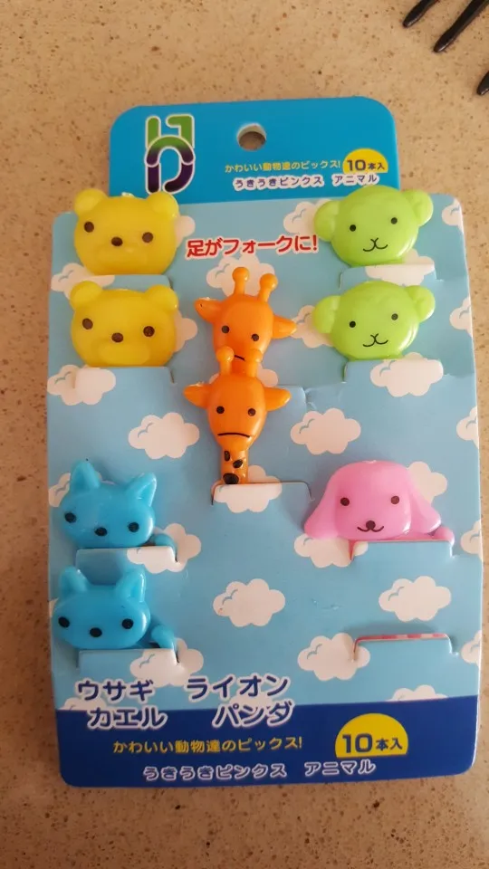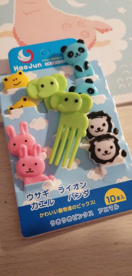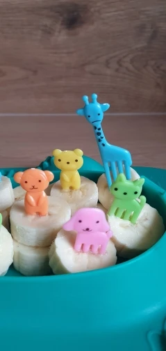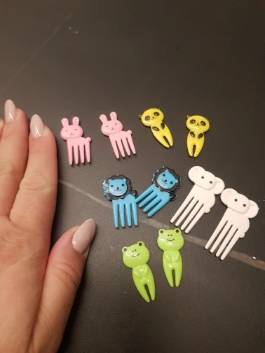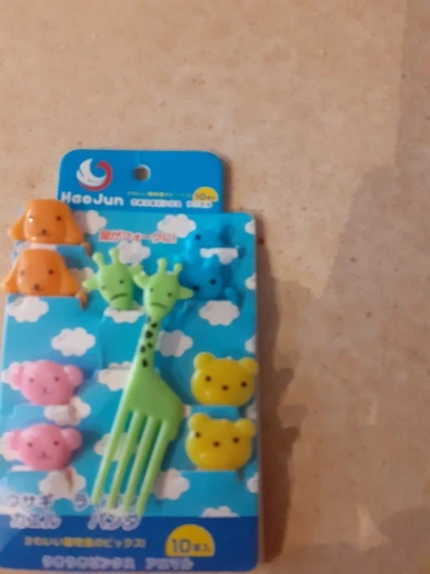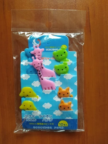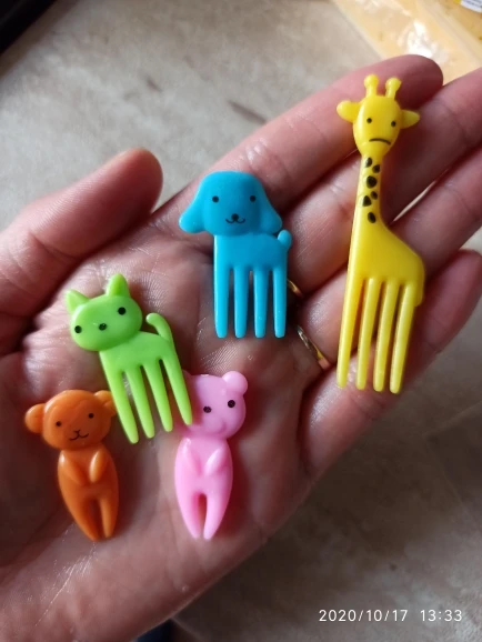 Состав отличается от того что на картинке. В наборе два мишки, два жирафа, две собачки, две кошки и две обезьянки. Одна вилка немного поцарапана. В остальном заказом довольна. Быстрая доставка