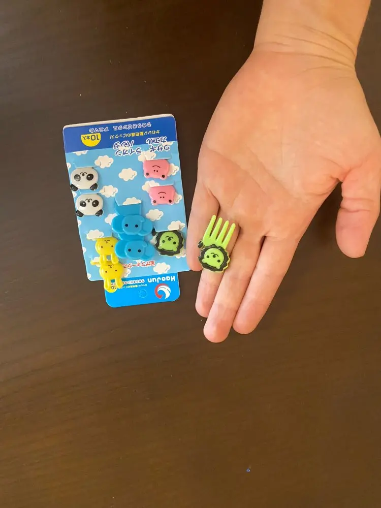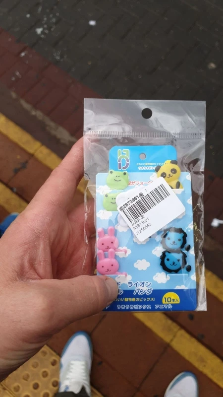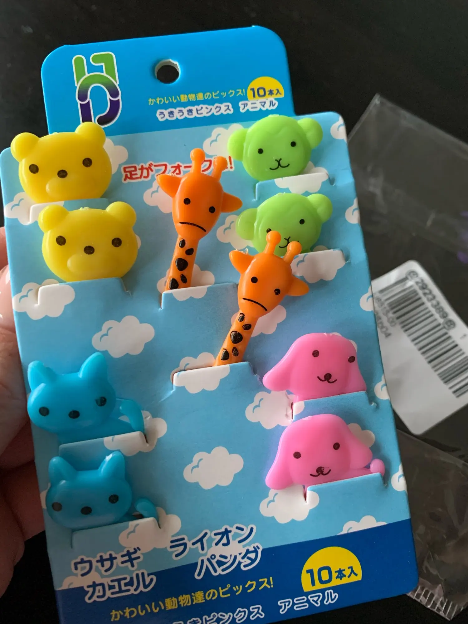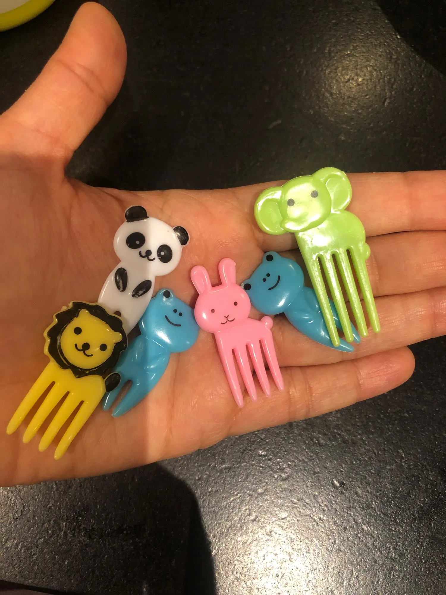 Состав отличается от того что на картинке. В наборе два мишки, два жирафа, две собачки, две кошки и две обезьянки. Одна вилка немного поцарапана. В остальном заказом довольна. Быстрая доставка