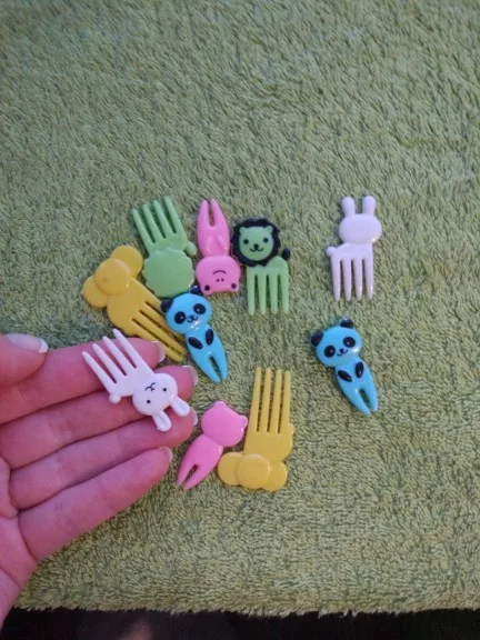 вилки ну ооооочень маленькие, ребенку не понравились. еда на них не фиксируется, только для декора. функциональности ноль.