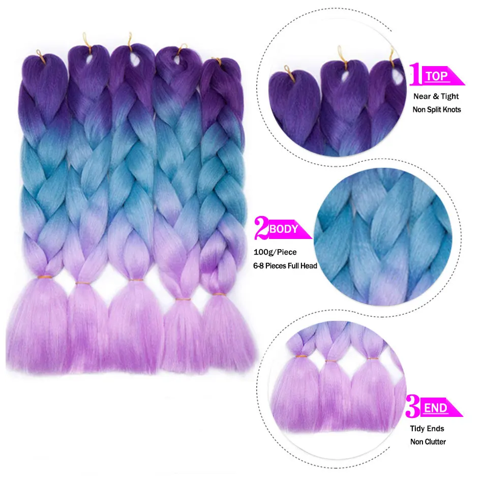 Волосы для наращивания SmartBraid, синтетические, Омбре, 24 дюйма, 100 г