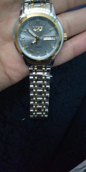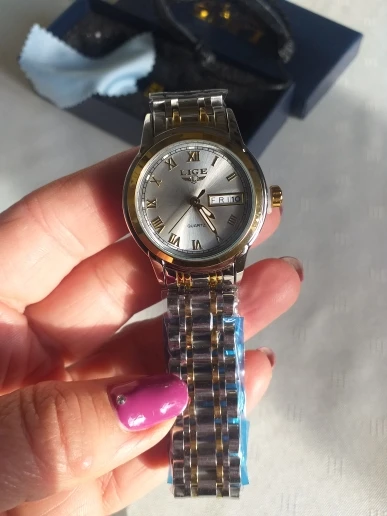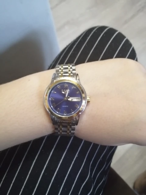 Часы , именно циферблат достаточно маленький миниатюрный женский. Я ждала больше. Долго возилась с тем как настроить календарь и день недели. Единственный минус большой ремешок, нужно идти укорачивать. На фото часы казались более желто-золотыми, в Реале ближе к бронзе. В целом я довольна.