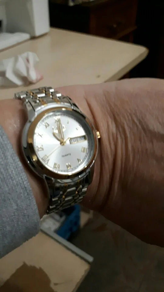 Классные часы, красивые, удобные. Очень быстрая доставка. Заказала 7 января, пришли сегодня 10. прямо домой привезли! В Коломну МО. Спасибо большое! Посмотрим как будут тикать. Настроила дату и число и время, звенья тоже легко вынимаются. В темноте видно.