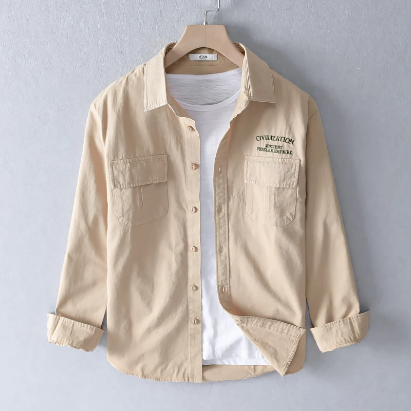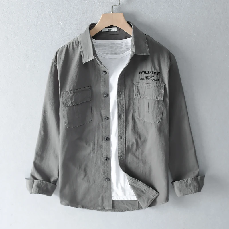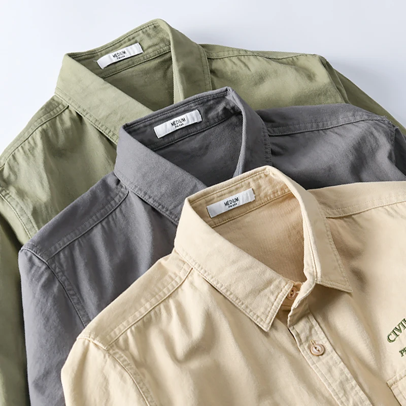 Рубашка мужская повседневная с длинным рукавом, 100% хлопок